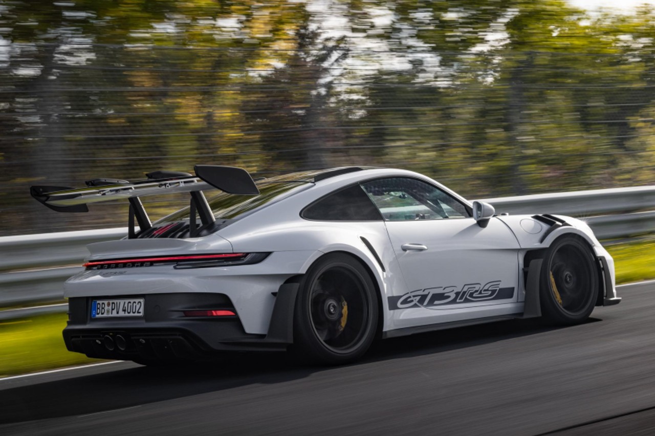 Diseñado para alcanzar el máximo rendimiento, el nuevo 911 GT3 RS homologado para carretera se beneficia de infinidad de conceptos y avances tecnológicos que provienen del mundo de la competición. Junto al motor bóxer de seis cilindros atmosférico de altas revoluciones con 525 CV y a la construcción ligera inteligente, los sistemas aerodinámicos y de refrigeración son los que prueban claramente su vínculo con las carreras. A 285 km/h, el deportivo alemán consigue una carga aerodinámica de 860 kg, tres veces más que la del 911 GT3.