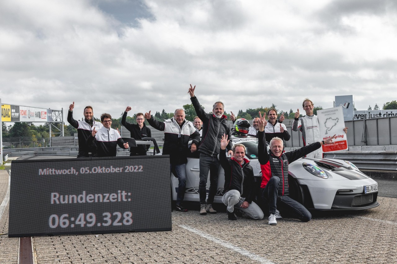 “Considerando que las condiciones no eran ni mucho menos las ideales, con un fuerte viento de cara en la larga recta de Döttinger Höhe y temperaturas de asfalto frías, estamos satisfechos con este tiempo. El 911 GT3 RS establece nuevos estándares en cuanto a chasis y aerodinámica. Nunca antes un coche de carretera ha estado tan cerca de uno de competición”, comentó Andreas Preuninger, director de modelos GT en Porsche.