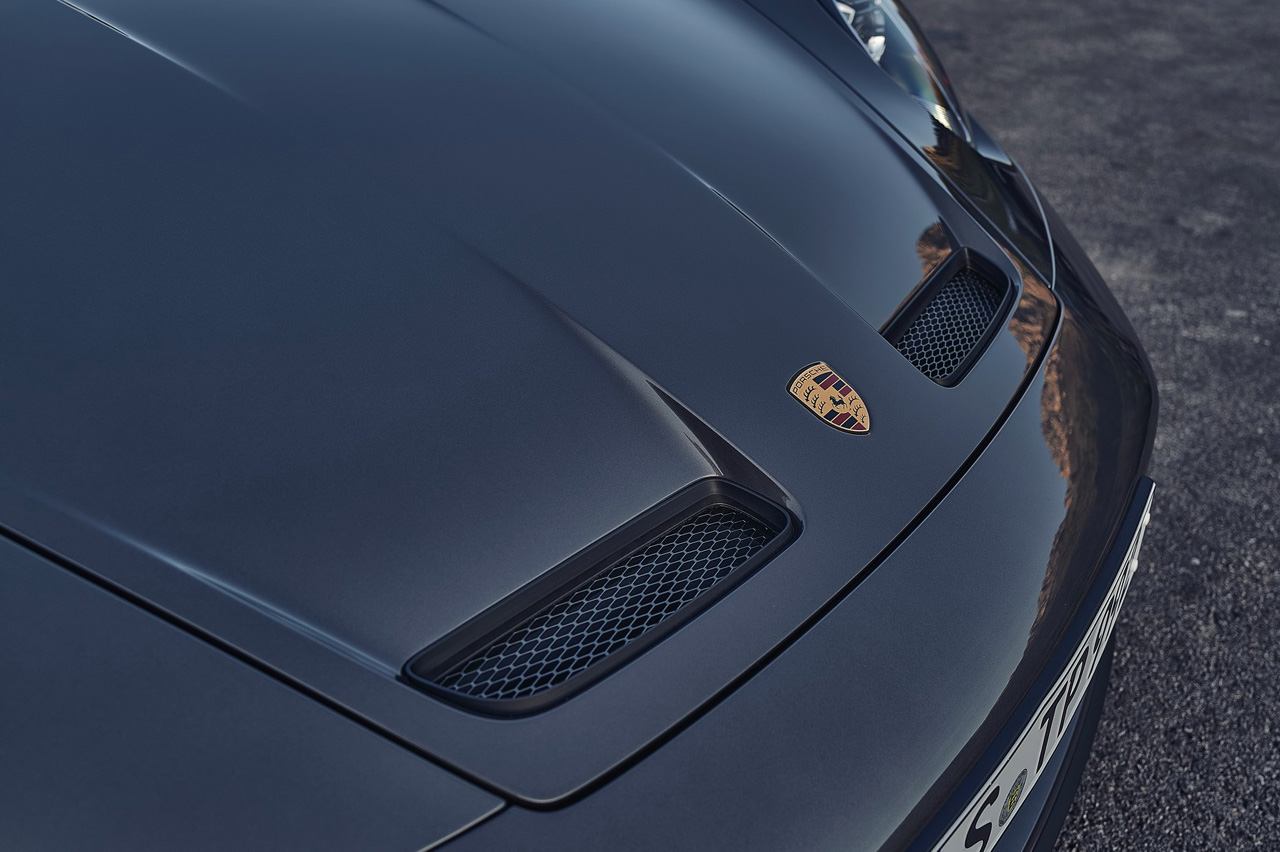 También incorpora unas molduras cromadas en el marco de las ventanillas, que en el GT3 convencional van rematadas en negro. Un cambio que Porsche ha ejecutado para otorgar al exterior una imagen un poco más lujosa, al igual que la decisión de pintar el frontal en el color exterior -en el GT3 normal lleva elementos en negro-. La última modificación del exterior afecta a las salidas de escape, que siguen siendo dos ubicadas en posición central con la diferencia de que ahora tienen un acabado plateado en lugar de negro.