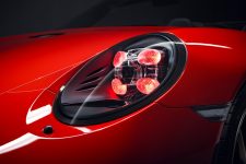 Además de su llamativa pintura, las llantas de bloqueo central de 21 pulgadas son otro elemento diferenciador del estudio de diseño. Se inspira en el 911 RSR y el GT3 R y está acompañado de unos faros de circulación diurna que, coincidiendo con la pintura de su carrocería, se encienden en rojo. Los espejos exteriores en forma de “Talbot”, la tapa del depósito en negro-cromo y platino, y el interior de cuero negro parcialmente perforado con detalles en rojo completan el vehículo.