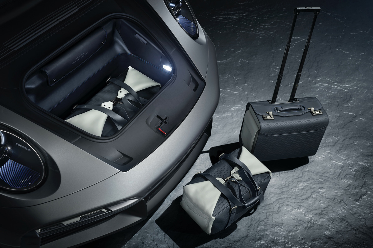 Los clientes que compren una de las 10 unidades del Porsche 911 Turbo S ‘Duet’ recibirán un juego de maletas a medida Porsche Design. Estas están compuestas por una maleta de piloto y dos bolsas más pequeñas y encajan perfectamente en el maletero frontal del modelo. A esto hay que sumar la posibilidad de adquirir una unidad de la edición especial del reloj Porsche Design Globetimer UTC de 1919 creado para la ocasión.