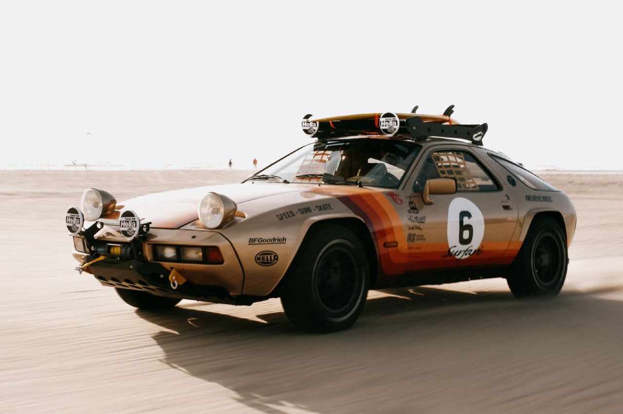 Después de su debut en el festival Hel Riders, llegó el momento de un viaje por carretera. El coche reunió un convoy y se dirigió a Sylt, en Alemania, para el festival Petro-Surf air-cooled Porsche, y luego a la isla de Rømø, en Dinamarca. Resultaron ser los lugares perfectos para poner a prueba de verdad el 928 Surfari, al tiempo que le permitían conectar con su entorno natural, con todo el equipo de Hel Riders observando el coche navegando por la playa. Ahora, mientras la historia continúa, sólo queda esperar la próxima ola.