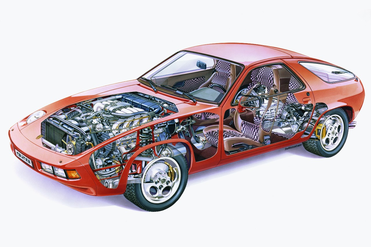 El Porsche 928 (prueba) es un buen punto de partida, con su clásico motor V8. Cualquiera que haya oído hablar de este motor sabrá lo especial que es y que la potencia no sería un problema. Se trata de un bloque de ocho cilindros dispuestos en un ángulo de 90 grados, refrigerado por agua y sistema de inyección de combustible K-Jetronic. La cilindrada del motor se amplió desde los 4.5 litros iniciales hasta alcanzar los 5.4 litros, con niveles de potencia que iban desde los 240 hasta los 300 CV.