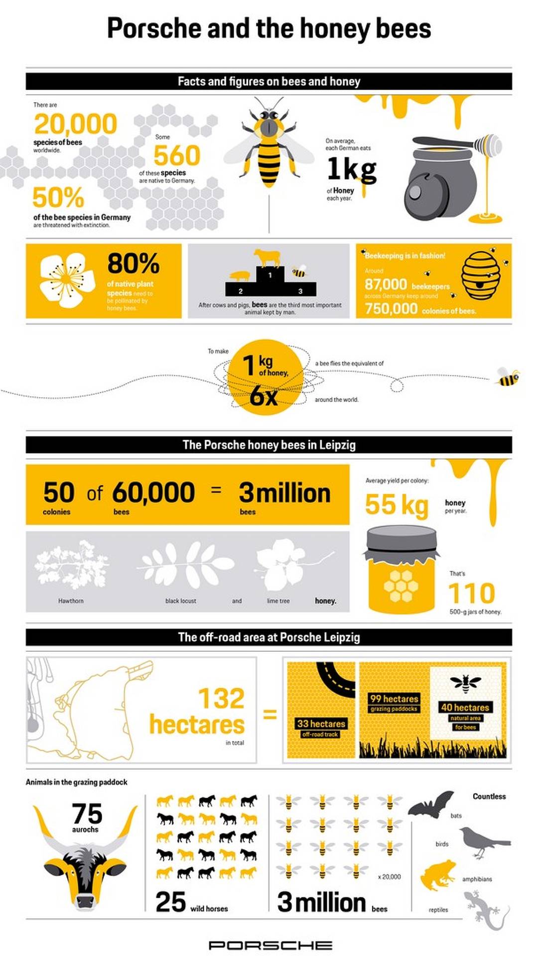 Una vez se puso en marcha, Porsche estableció diversas colonias pobladas por 1,5 millones de abejas, que en todo el año pasado llegaron a producir 400 kilos de miel que, para sorpresa de la marca, prácticamente le quitaron de las manos. Motivados por el éxito y con intención de seguir contribuyendo a proteger el medio ambiente, ese curso han duplicado el número de insectos hasta llegar a los tres millones y formar así un total de 25 colonias que la marca espera lleguen a producir una tonelada de miel.