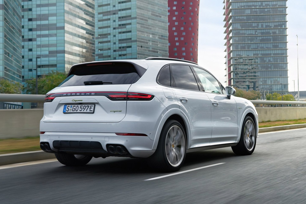 Combinados, producen una potencia máxima de hasta 462 CV y un par motor de 700 Nm. Cifras que son suficientes para lanzar al Porsche Cayenne E-Hybrid de 0 a 100 km/h en 5 segundos. La velocidad máxima queda fijada en 253 km/h, con un consumo medio oficial de 3,2 l/100km y ofrece la posibilidad de recorrer hasta 44 km en modo 100 % eléctrico gracias a su batería de 14,1 kWh de capacidad.