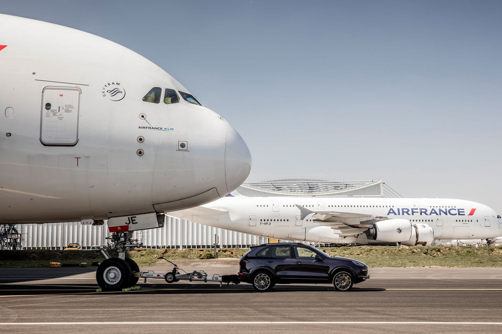 Porsche ha establecido una nueva marca mundial, pero no se trata de ningún récord de vuelta rápida ni de velocidad. La firma alemana ha establecido un nuevo récord Guinness tras remolcar un Airbus A380 con un Porsche Cayenne durante un total de 73 metros de distancia en el el aeropuerto Charles de Gaulle de París (Francia). Una demostración de fuerza del Cayenne diésel más potente de la gama, que tiró con energía de las 285 toneladas del que es el avión de pasajeros más grande y lujoso del planeta.