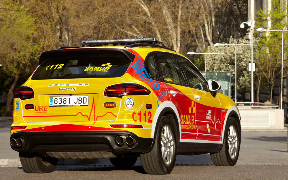 Porsche Ibérica ha cedido a la Unidad de Reanimación Extracorpórea Móvil del SAMUR un Porsche Cayenne S E-Hybrid, el SUV híbrido enchufable capaz de rendir 416 CV. Este vehículo en modo eléctrico puede recorrer hasta 36 kilómetros y alcanzar 125 km/h. Si el conductor decide utilizar todos los recursos, este Cayenne ‘salvavidas’ puede llegar hasta los 243 km/h y acelerar de 0 a 100 km/h en 5,9 segundos. Gracias a la combinación del motor de gasolina con el eléctrico su consumo homologado es de 3,4 l/100 km.