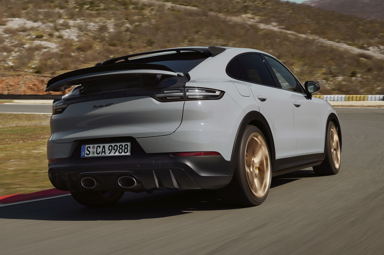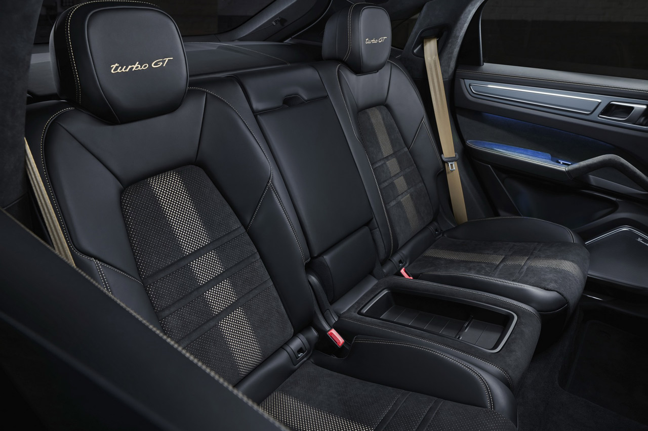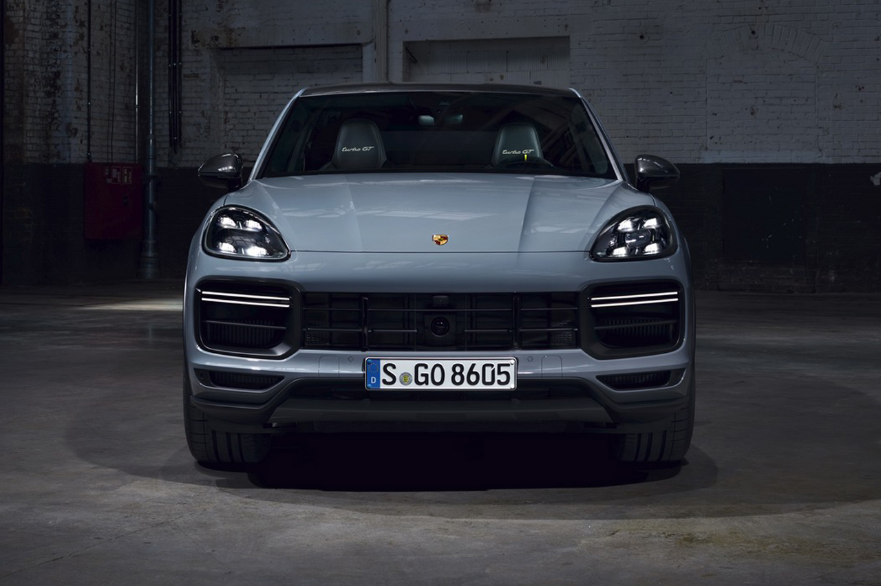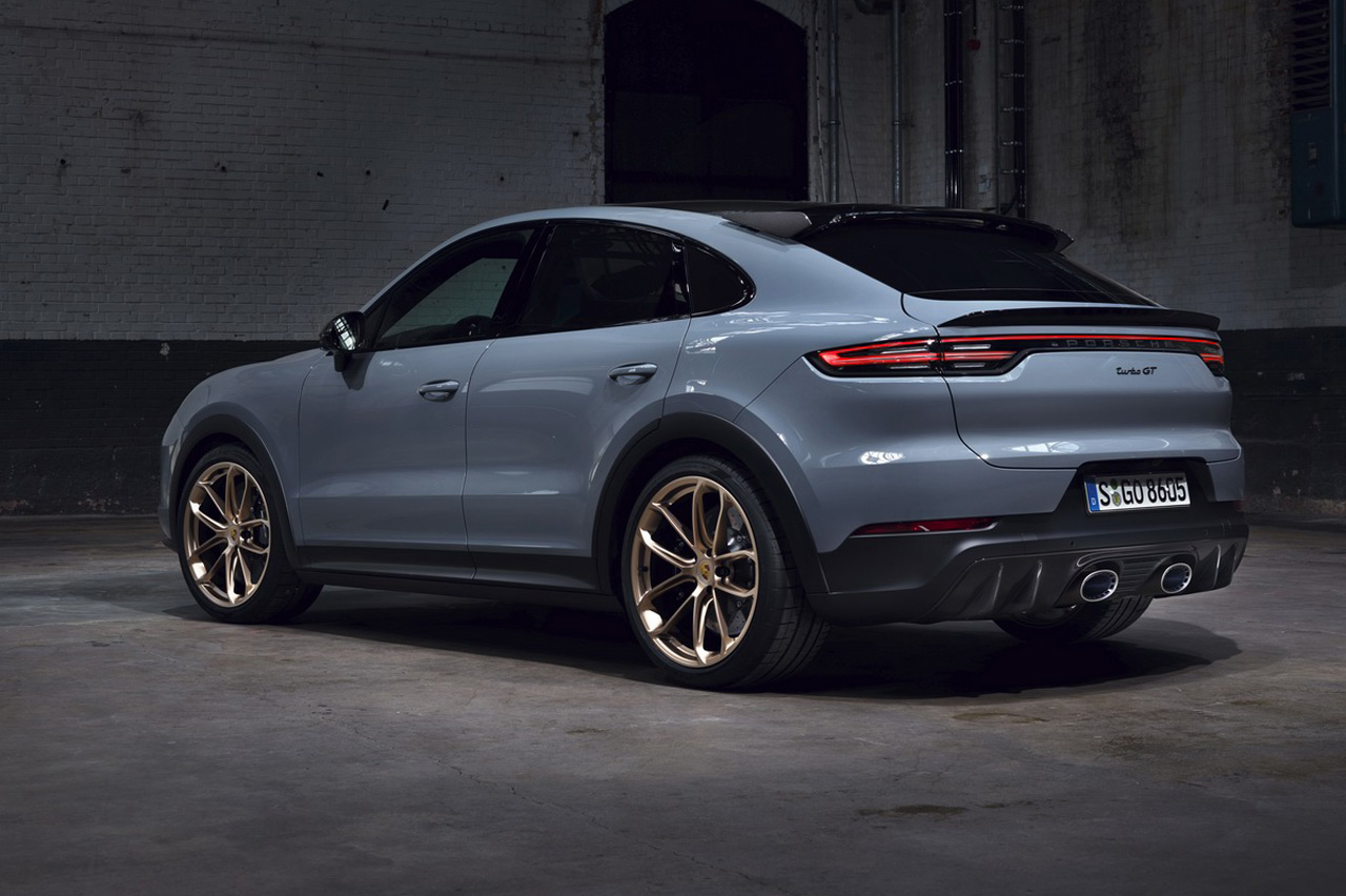 A nivel estético, el Porsche Cayenne Turbo GT se diferencia gracias a un faldón delantero específico, con un labio inferior más llamativo y unas entradas de aire más grandes en el parachoques. El techo es de fibra de carbono y las aletas presentan unas extensiones negras para dar cabida a unas llantas de aleación GT Design de 22 pulgadas de diámetro. Otro elemento único del GT son las extensiones laterales del alerón de techo o el labio adicional de 25 mm que lleva el spoiler retráctil. Con estos dos últimos elementos logra hasta 40 kg de carga aerodinámica a 300 km/h.