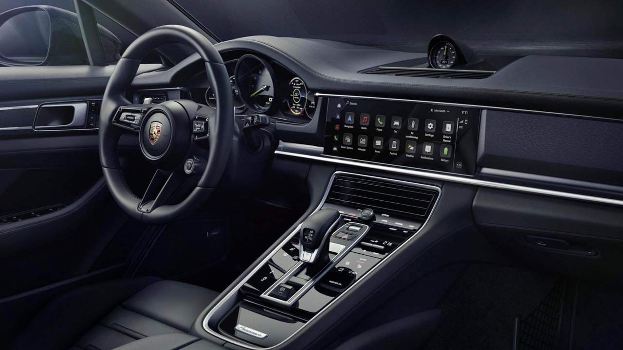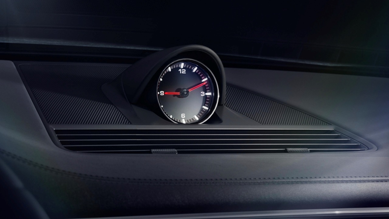 En el interior del Panamera Platinum Edition, los compradores encontrarán algunos detalles exclusivos, como los protectores de los umbrales de las puertas hechos en aluminio cepillado negro con el logotipo ‘Platinum Edition’ grabado, o un reloj analógico situado en el salpicadero, que también es de serie.