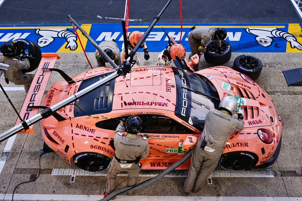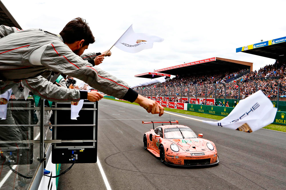 En las 24 Horas de Le Mans 2018, Porsche optó por vestir uno de sus Porsche 911 RSR con los colores del Porsche ‘Pink Pig’, concretamente a la unidad que lucía el dorsal 92, conducida por Kévin Estre, Laurens Vanthoor y Michael Christensen. Por suerte tuvo un final totalmente distinto al del original ya que al finalizar la carrera, tras haber estado en cabeza durante prácticamente toda la prueba, se hizo con el primer puesto en la categoría GTE-Pro al conseguir dar 344 vueltas al trazado.