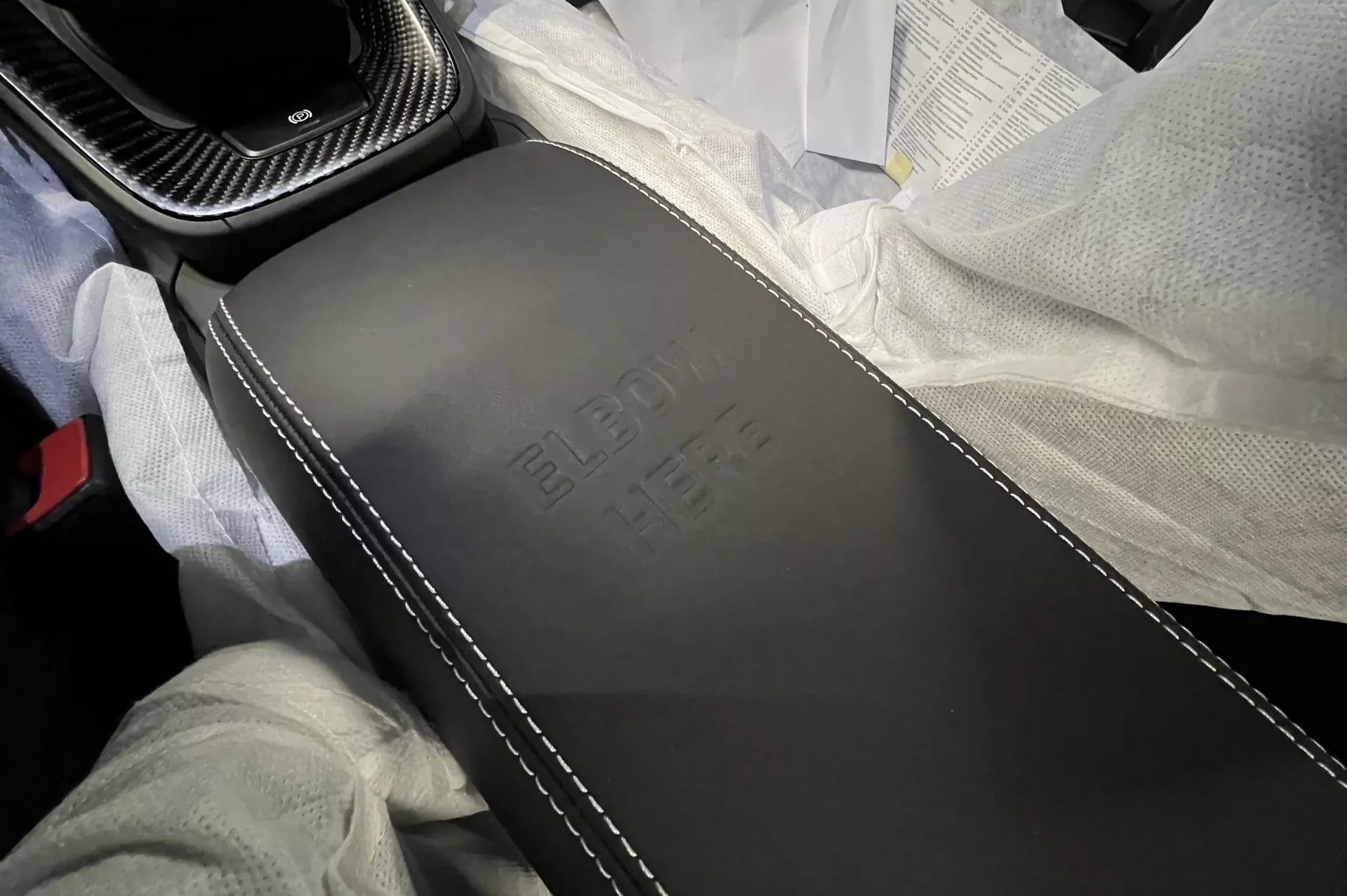 Y por último, que sepamos, su propietario, que responde a Sechsgang en Rennlist y que no sabemos si tiene más sentido del humor o dinero, ha añadido "Codo aquí" en relieve, en la consola central, extra que asciende a 670 dólares, 636 euros.