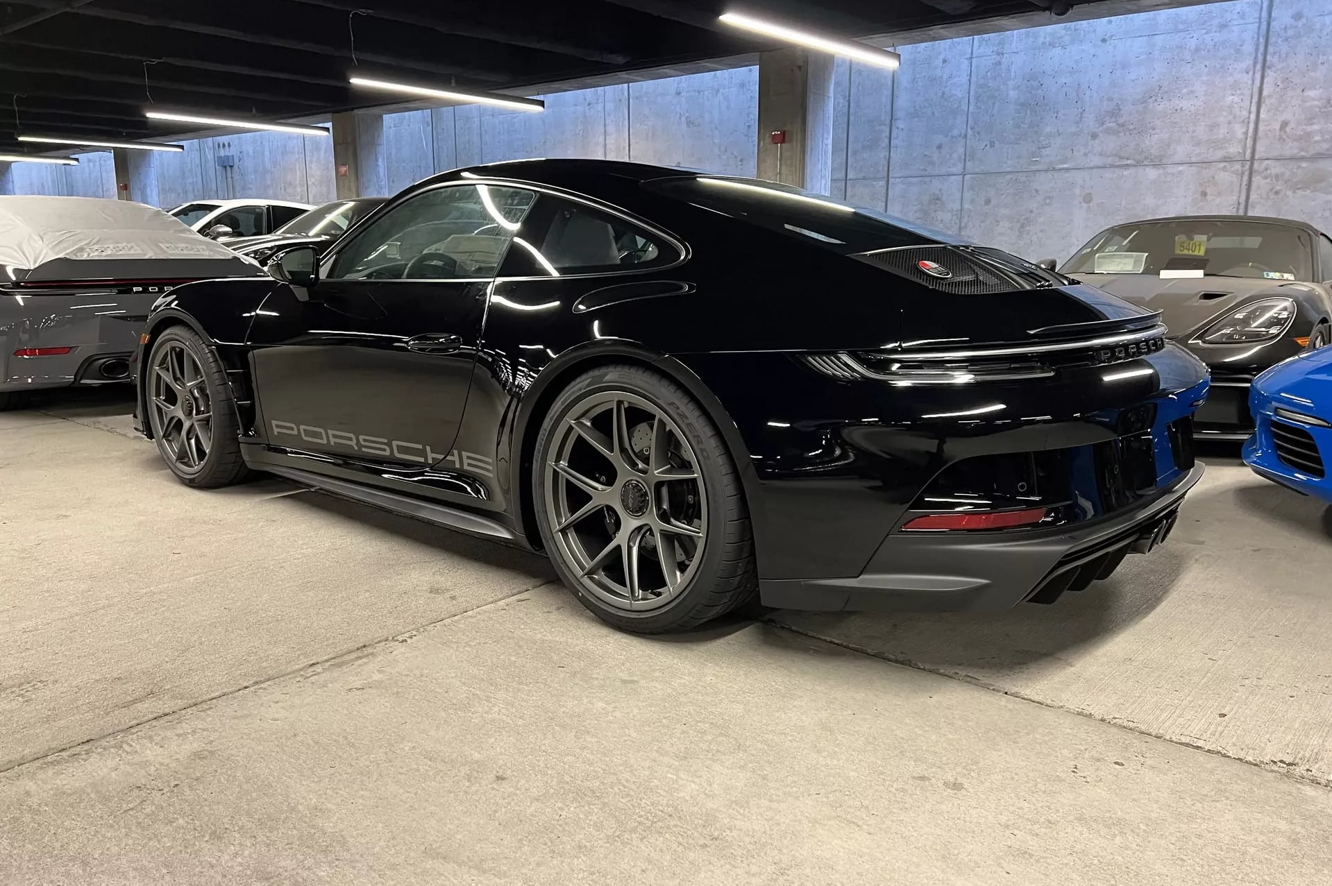 Las opciones de personalización que ofrece Porsche a los clientes son casi infinitas. Pero, algunas veces, pone límites... Aunque no al nuevo propietario de un Porsche 911 S/T, que además de meter mucho del equipamiento en color negro, carrocería, logotipos, monotuerca de las llantas, pinzas de freno y habitáculo, también ha colado dos mensajes en el umbral de las puertas. Uno de ellos es una broma.