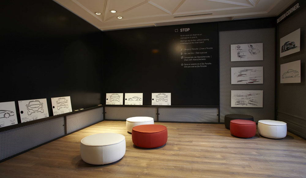 No podía faltar una área donde aflorase la creatividad. Y para ello se ha creado el Design Córner, donde se explica cómo se realiza un diseño. La compañía ha instalado una enorme pizarra para que el asistente pueda sentirse diseñador por un día, facilitándole el trabajo con una serie de plantillas.
