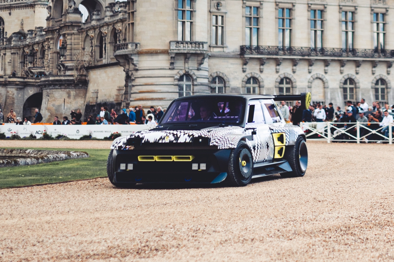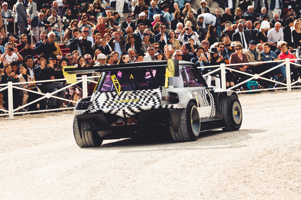 El R5 Turbo 3E estuvo acompañado de modelos de la firma de moda La Fameuse, con prendas únicas, deportivas y elegantes creadas para la ocasión. Mientras tanto, a nivel técnico el prototipo eléctrico de R5 Turbo cuenta con dos motores eléctricos de 380 CV y 700 Nm en el eje trasero y una batería de 42 kWh. Puede pasar de 0 a 100 km/h en 3,9 segundos y alcanza una velocidad máxima de 200 km/h.