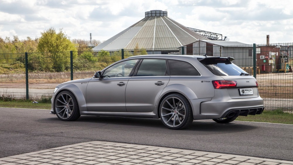 El Audi RS6 Avant de Prior Design es toda una declaración de intenciones. El preparador alemán se mete de lleno en esta preparación sobre el familiar más potente mundo y nos presenta esta creación terminada en un gris mate con un agresivo kit de carrocería más ancho y una mejora de rendimiento para su potente motor V8 TFSI biturbo.