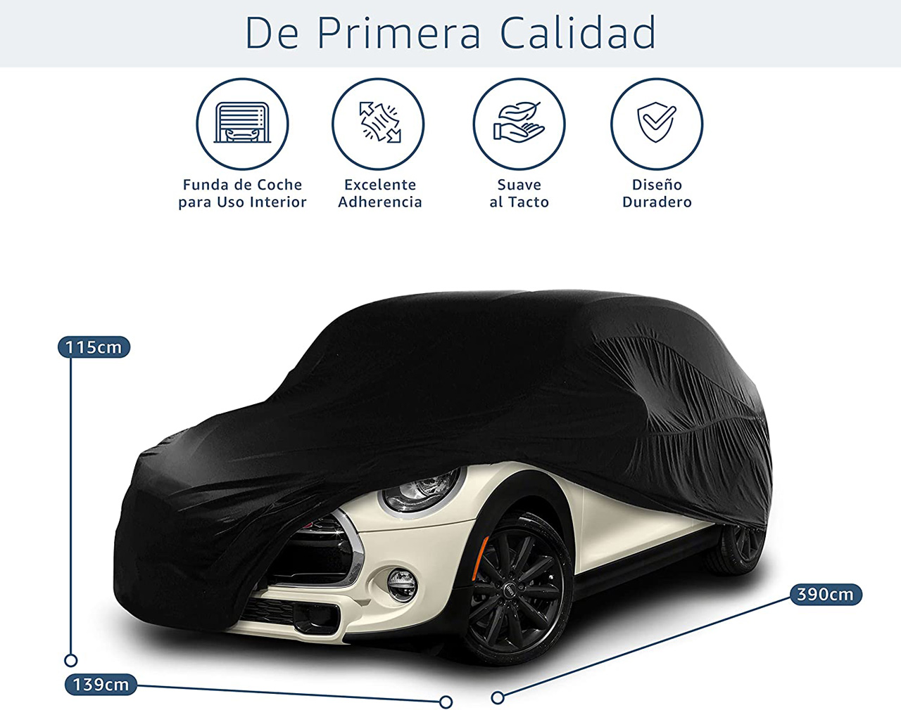 Está fabricada en polialgodón, un material transpirable, antipolvo y ligero (con 130 gramos por metro cuadrado) que es ideal para proteger tu vehículo del polvo o de pequeños roces o arañazos. Además, se ajusta bien a la carrocería del coche gracias a su elasticidad, siendo para modelos de corte urbano o pequeños deportivos.