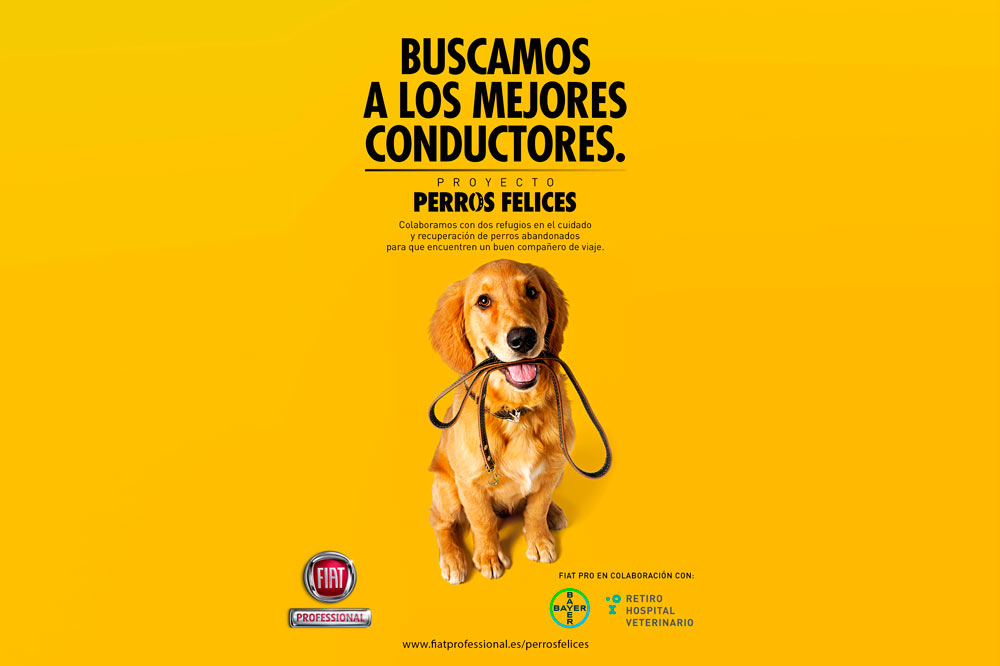 Excelente iniciativa solidaria la que ha creado Fiat Professional junto a Bayer y Retiro Hospital Veterinario. El fabricante italiano promueve un proyecto para el cuidado y recuperación de perros abandonados denominado "Proyecto Perros Felices". Y es que en nuestro país se abandonan más de 100.000 de estos animales al año.
