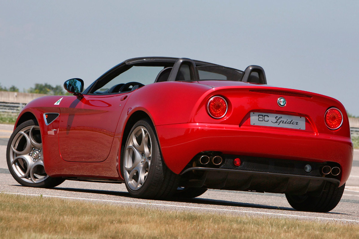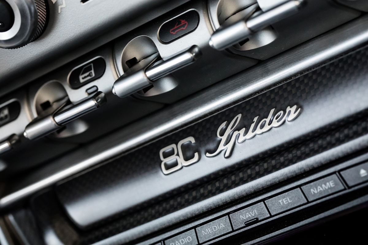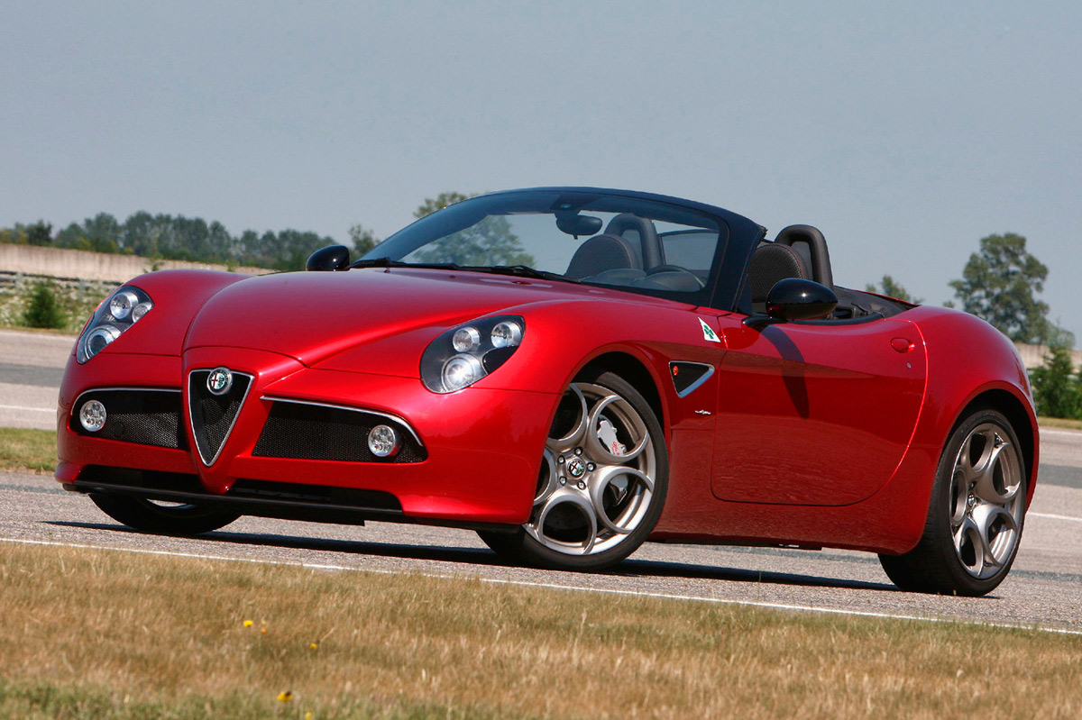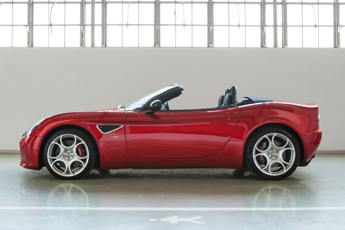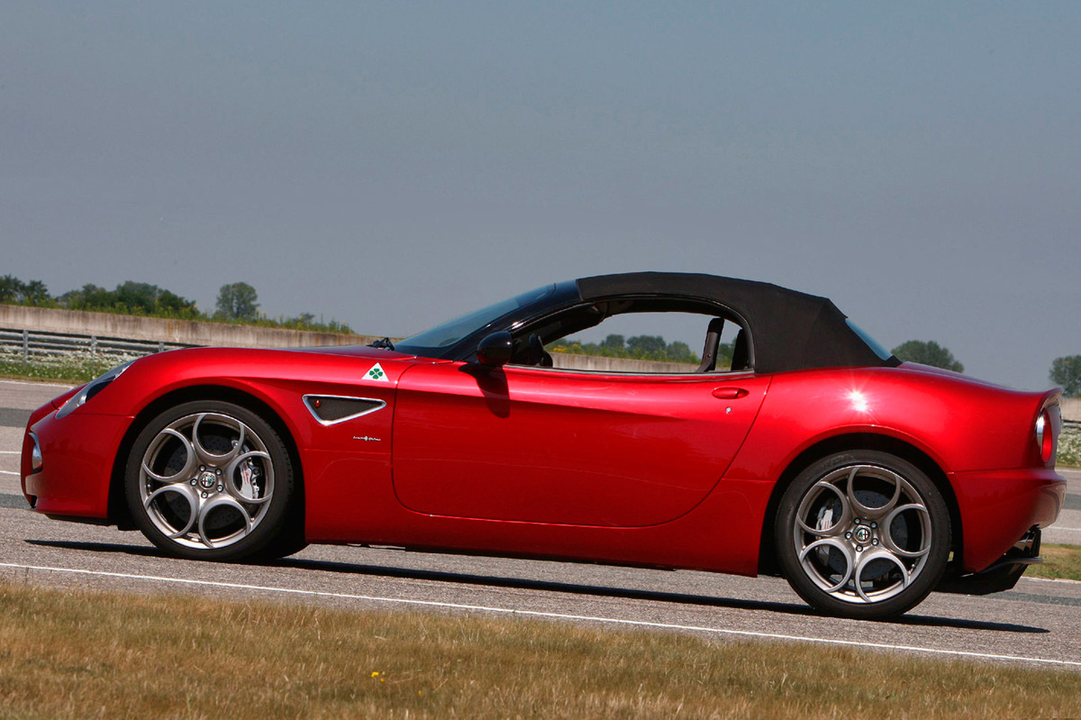 Aún más bello que el Alfa Romeo 8C Competizione, cuyos 500 ejemplares fabricados se agotaron inmediatamente, el Spider llegó dos años más tarde con aún más éxito –se vendieron todos incluso antes de salir al mercado-. Por delante es claramente un Alfa, las proporciones laterales se fundamentan en los clásicos sport, pero no hay nada anticuado en sus curvas sensuales y hombros musculosos. Simplemente, diría que es delicioso de ver, nada estrafalario. Es preferible mirar las fotos, pues las descripciones escritas se quedan cortas.
