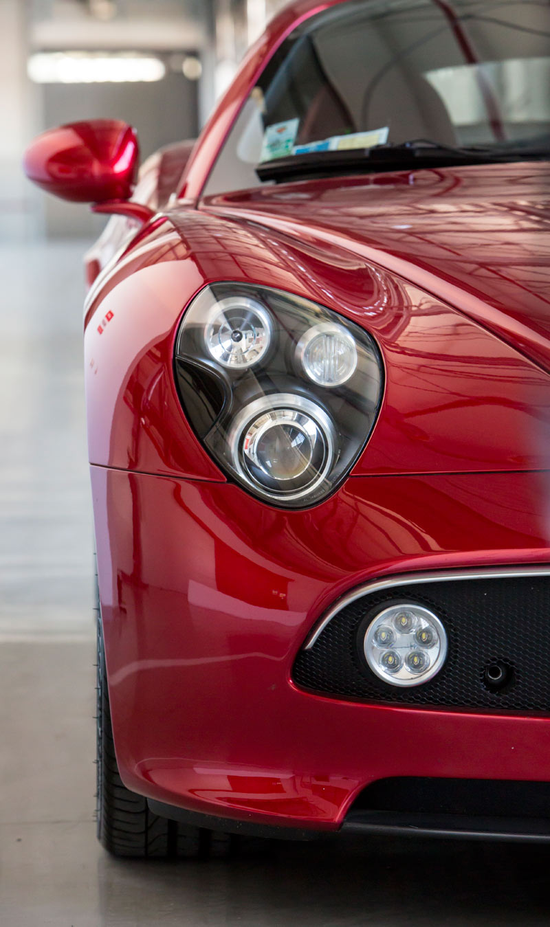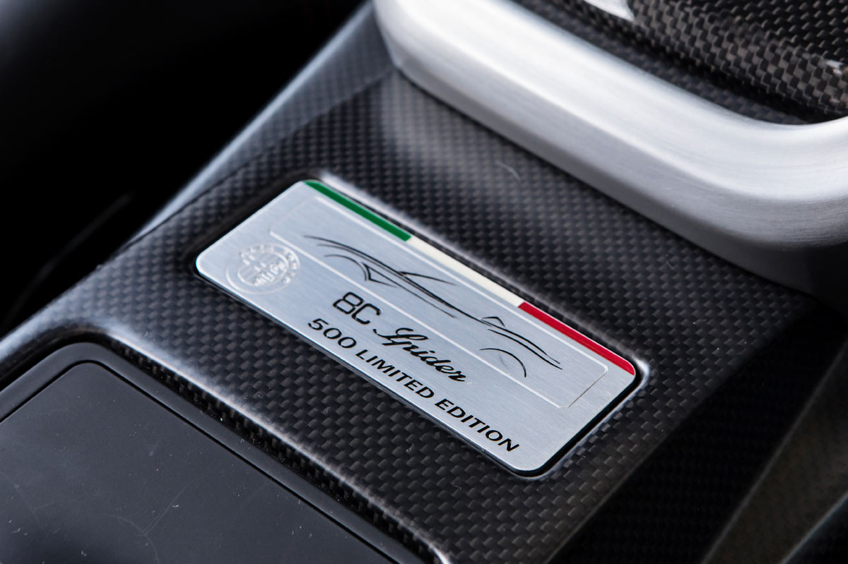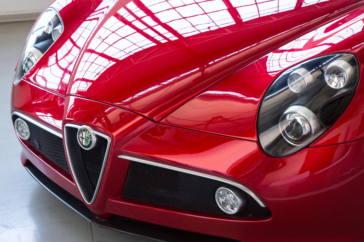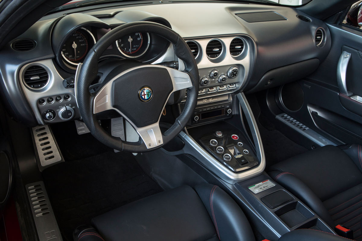 Aún más bello que el Alfa Romeo 8C Competizione, cuyos 500 ejemplares fabricados se agotaron inmediatamente, el Spider llegó dos años más tarde con aún más éxito –se vendieron todos incluso antes de salir al mercado-. Por delante es claramente un Alfa, las proporciones laterales se fundamentan en los clásicos sport, pero no hay nada anticuado en sus curvas sensuales y hombros musculosos. Simplemente, diría que es delicioso de ver, nada estrafalario. Es preferible mirar las fotos, pues las descripciones escritas se quedan cortas.