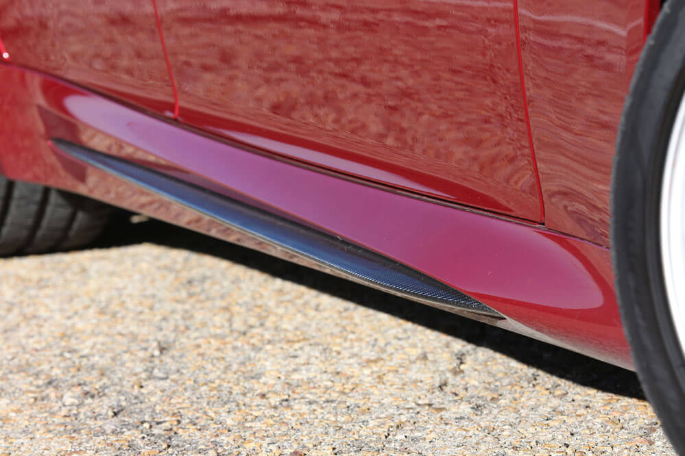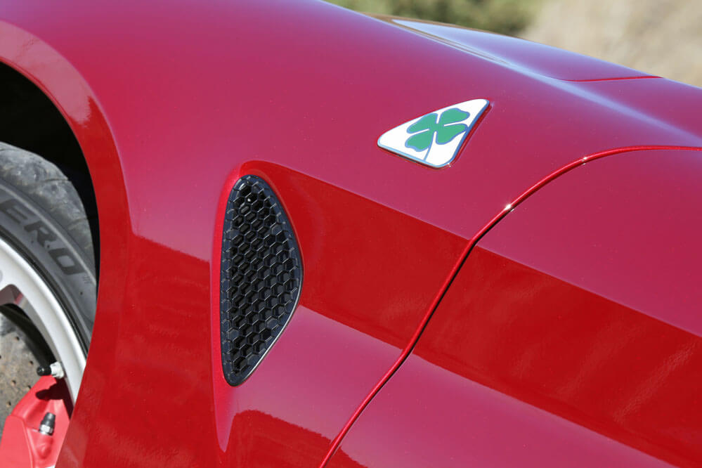 Si por algo se ha caracterizado la firma italiana a lo largo de su extensa historia es, sin lugar a dudas, por crear vehículos veloces de inigualable belleza. Solo tienes que echar un vistazo rápido al coche que hoy tenemos la fortuna de probar: el Alfa Romeo Giulia Quadrifoglio. De primeras, en el juego de miradas, mientras espera inerte que le des vida, comprendes que es capaz de ofrecerte algo que otros vehículos de la competencia no pueden: su diseño. Mantiene la elegancia de la versión base, sí, pero a ella se suma una imagen dinámica sin igual. Sus llantas de 19 pulgadas y sus paragolpes, pero sobre todo los prominentes estribos, que adoptan aditamentos aerodinámicos realizados en fibra de carbono, mismo material utilizado en el splitter del paragolpes delantero, en el pequeño alerón y bajo el capó, le dan una imagen deportiva de la que pocos, muy pocos automóviles pueden presumir. ¡Menudo regalo para la vista!