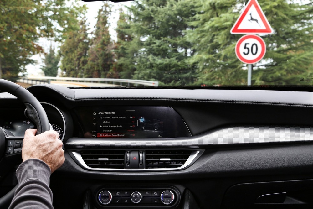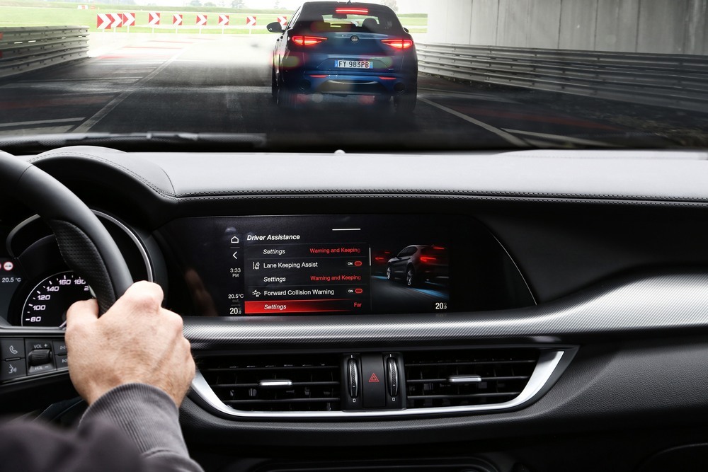 La pantalla TFT del cuadro de mandos, situada entre los relojes analógicos, mantiene sus 7 pulgadas pero presenta grafías actualizadas para adecuarse a los nuevos asistentes de conducción. Estos últimos, denominados ADAS, han sido diseñados por Bosch y ofrecen nuevas funciones que permiten que el Stelvio 2020 pueda ser catalogado como un coche autónomo de Nivel 2.