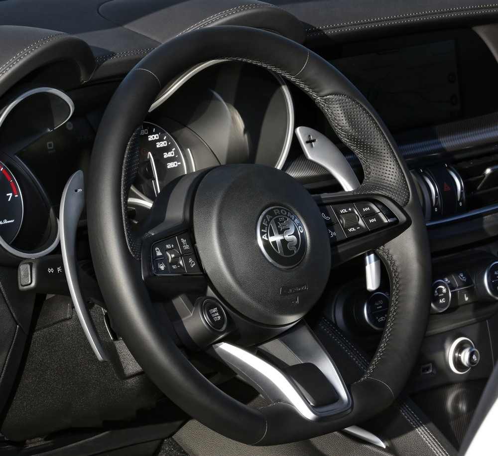 Otra novedad importante es la oferta de colores exteriores, que están divididos en cuatro categorías. Los más discretos son los ‘Solid’, que incluyen el Blanco, el Rojo Alfa y el Negro. Los ‘Competizione’, en referencia a la tradición deportiva de Alfa Romeo, incluyen las pinturas tricapa Blanco Trofeo y Rojo Competizione.