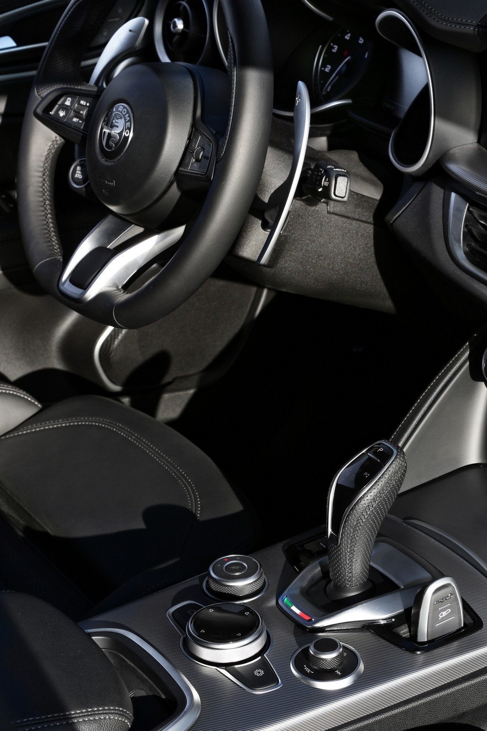 El habitáculo del Alfa Romeo Stelvio 2020 cuenta con cambios con los que se mejora el equipamiento, se aumenta la facilidad de uso usabilidad e incrementa la calidad percibida. La consola central de nuevo cuño cuenta con huecos portaobjetos más grandes y, como novedad, puede integrar debajo del apoyabrazos un cargador inalámbrico para teléfonos móviles compatibles. El diseño de la palanca de cambios también varía, con un tacto mejorado y los colores de la bandera italiana en su base.