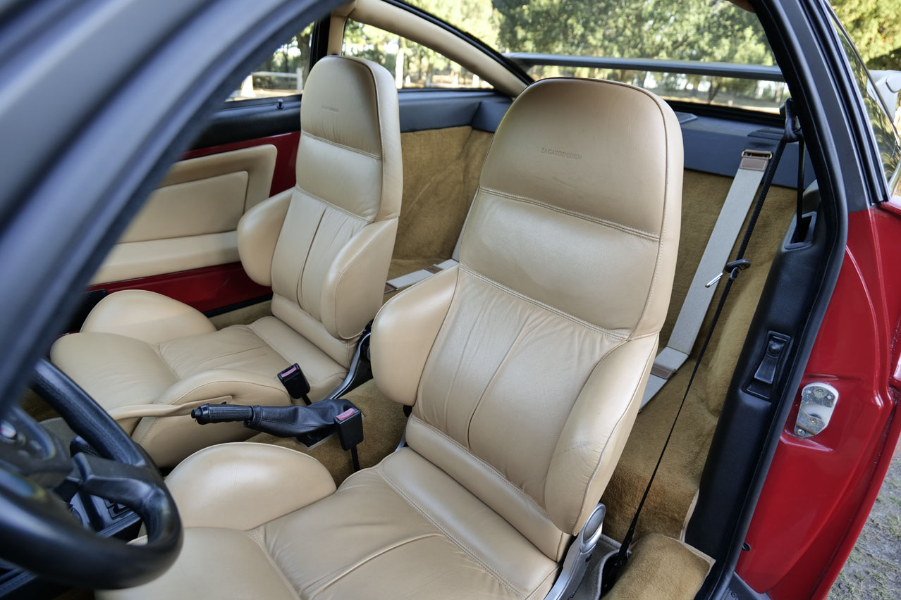 El interior tenía un diseño muy sencillo, con la instrumentación y la consola central orientada hacia el conductor y sin elementos que distrajesen lo más mínimo de lo verdaderamente importante, un volante Momo de tacto y tamaño perfectos y los paneles de puerta y asientos tapizados en cuero de la mejor calidad y perfectos por confort y sujeción lateral.