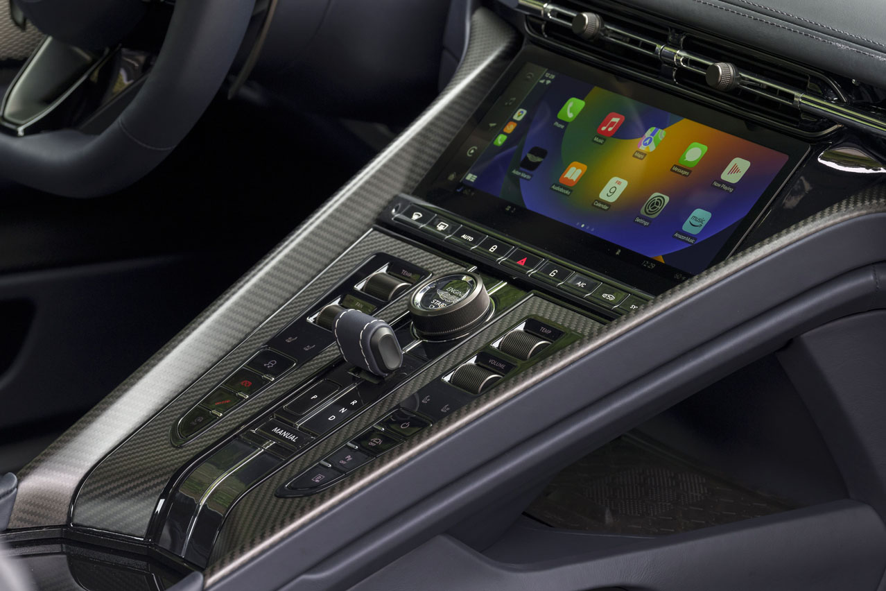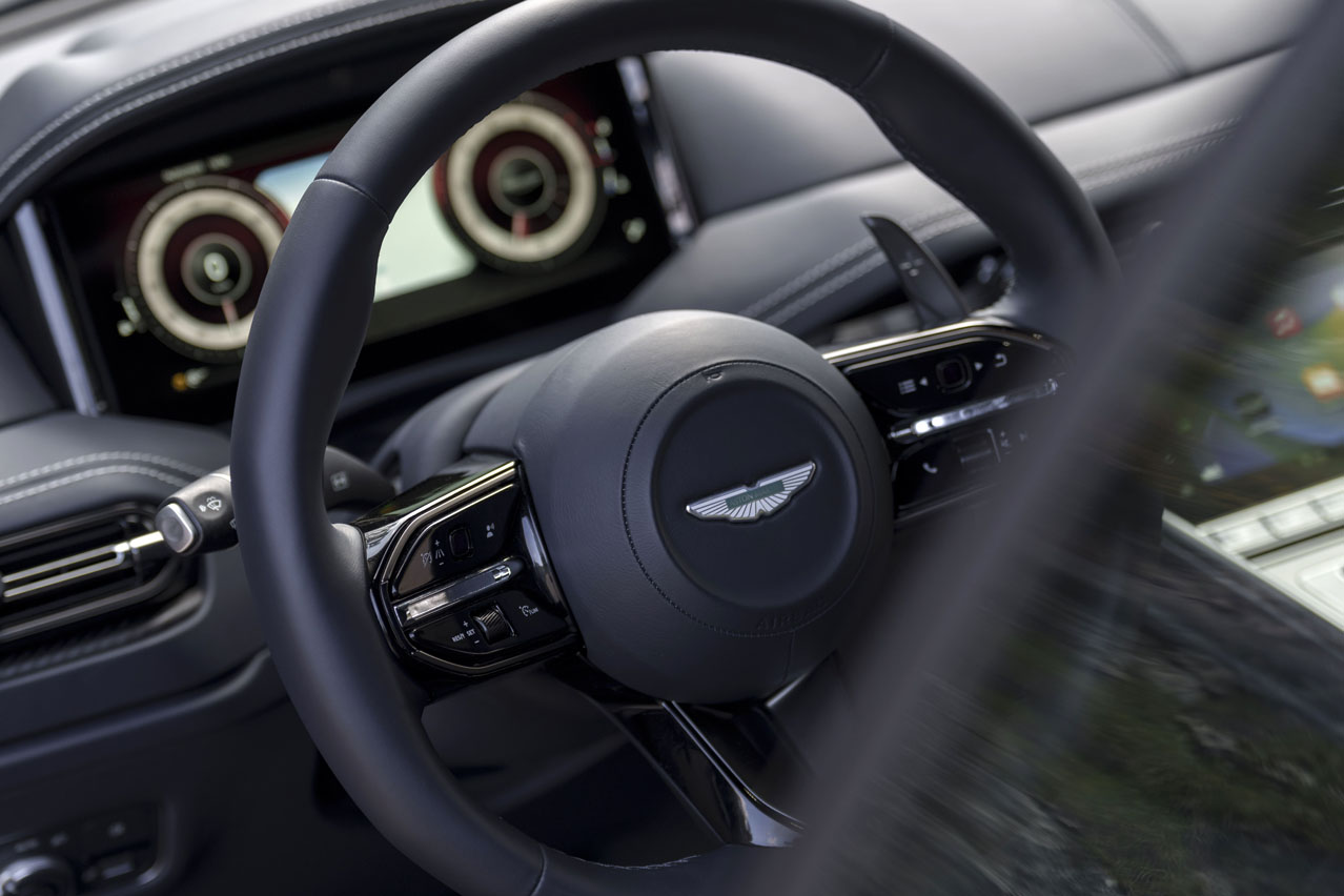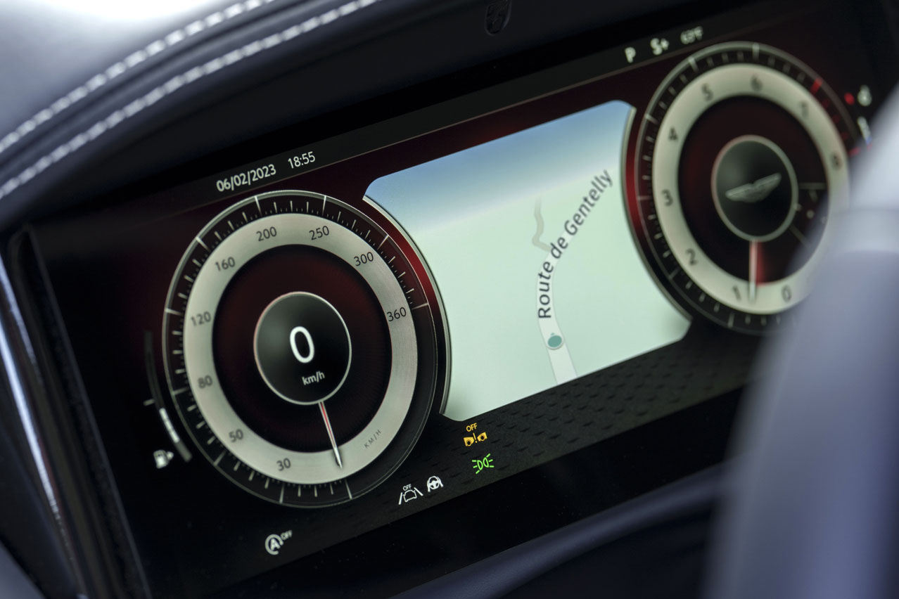 De entrada, hay un nuevo volante, bastante cómodo al tacto. Además, hay dos pantallas de 10,25” -una para el cuadro de instrumentos y otra para el infoentretenimiento- integradas en el salpicadero y que funcionan con un sistema propio de Aston Martin. Se ven bien y responden de manera fluida, por lo que la primera sensación es positiva.