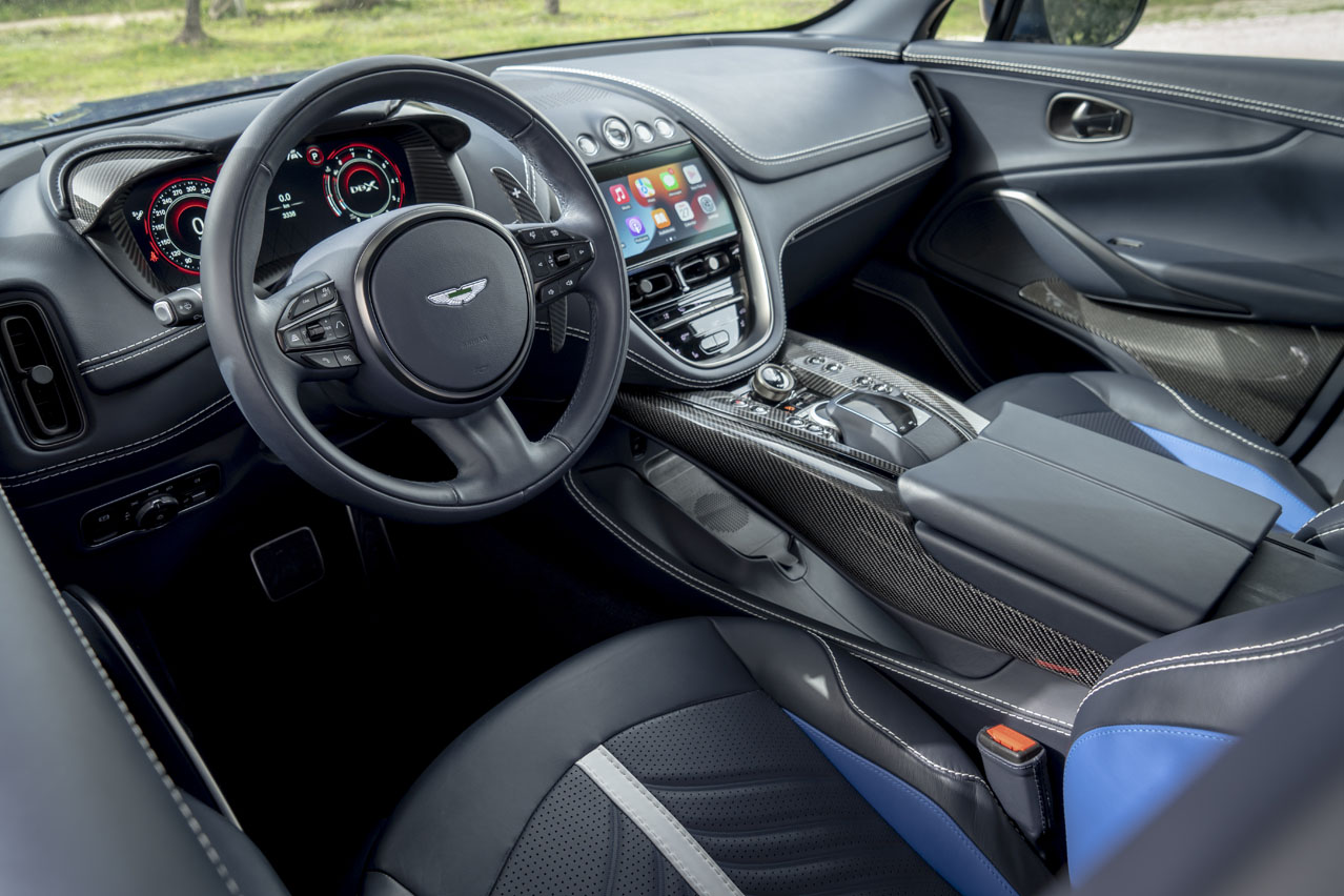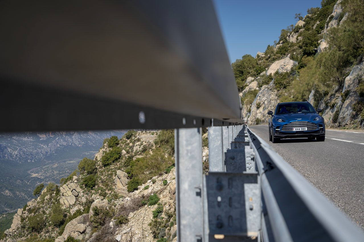Para comprobarlo, me he desplazado a Cerdeña, donde me espera una impresionante unidad en color azul. De entrada, es evidente que este no es un Aston Martin DBX normal. Esta versión se caracteriza por novedades desarrolladas desde la base y eso se nota a simple vista. Pero claro, debe ser así, ya que tengo ante mí un SUV con 707 CV de potencia y 900 Nm de par motor.