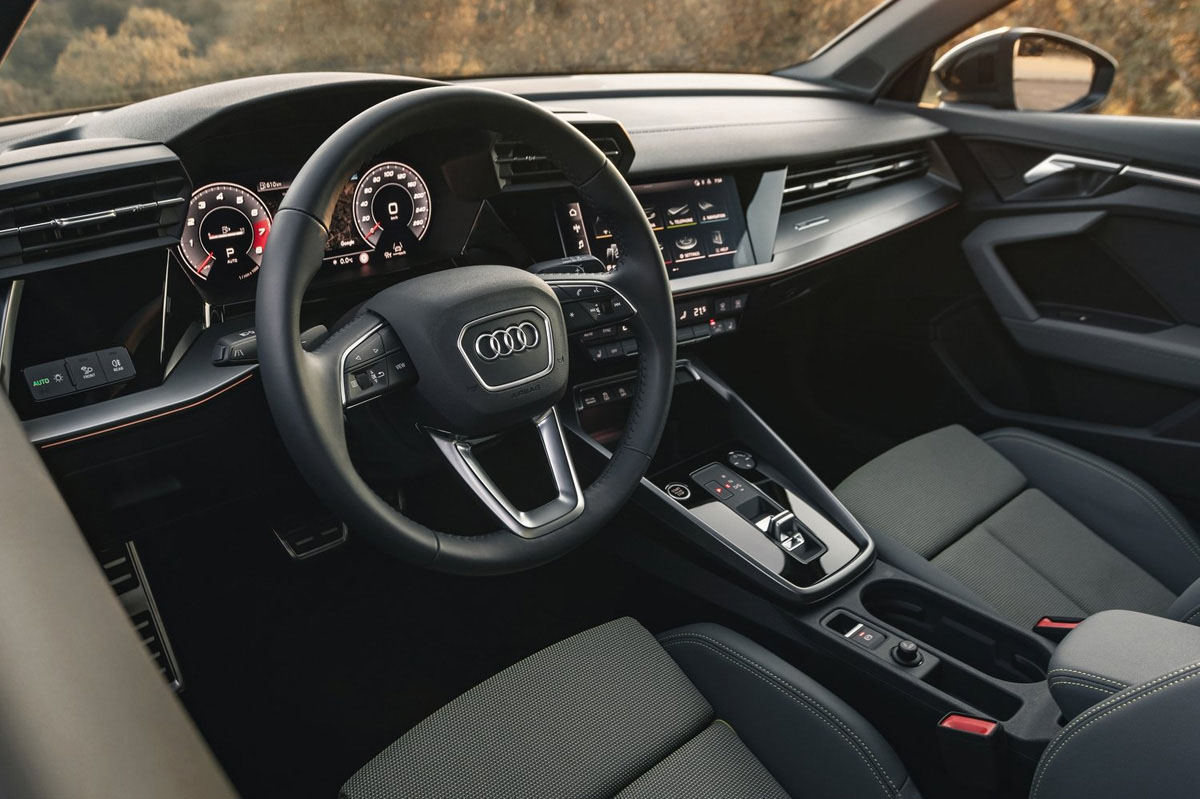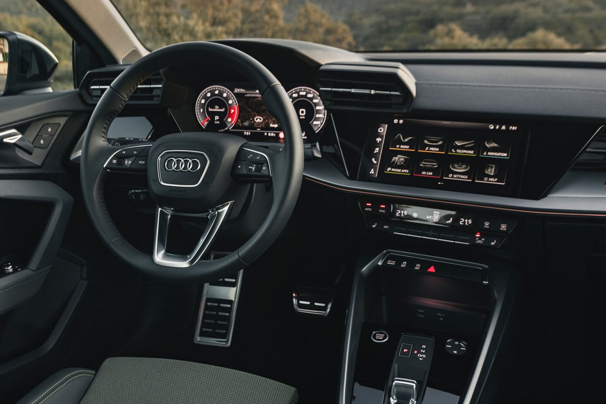 Eso sí, si por fuera vemos más atrevimiento estético, en el interior es todavía mayor, y las líneas rectas y simples de sus predecesores son ahora más vanguardistas y complejas, siguiendo la estela de otros modelos de la casa que se anticiparon, como el (prueba) Audi A1. Llama la atención que han desaparecido las salidas de ventilación redondas, una herencia de calidad del primer Audi TT que ahora desaparece en los A3. Crecen las pantallas, y como esbozábamos vienen de serie la que ocupa el lugar de los tradicionales relojes, -que opcionalmente puede ser aun mayor, hasta 12,3 pulgadas-, y la de la consola central, protagonistas del interior. Sabiamente, Audi ha encontrado un equilibrio entre estas y los botones físicos, que no desaparecen por completo y controlan sistemas como la ventilación. La calidad es muy elevada, en la onda de sus rivales naturales, los BMW Serie 1 y Mercedes Clase A.