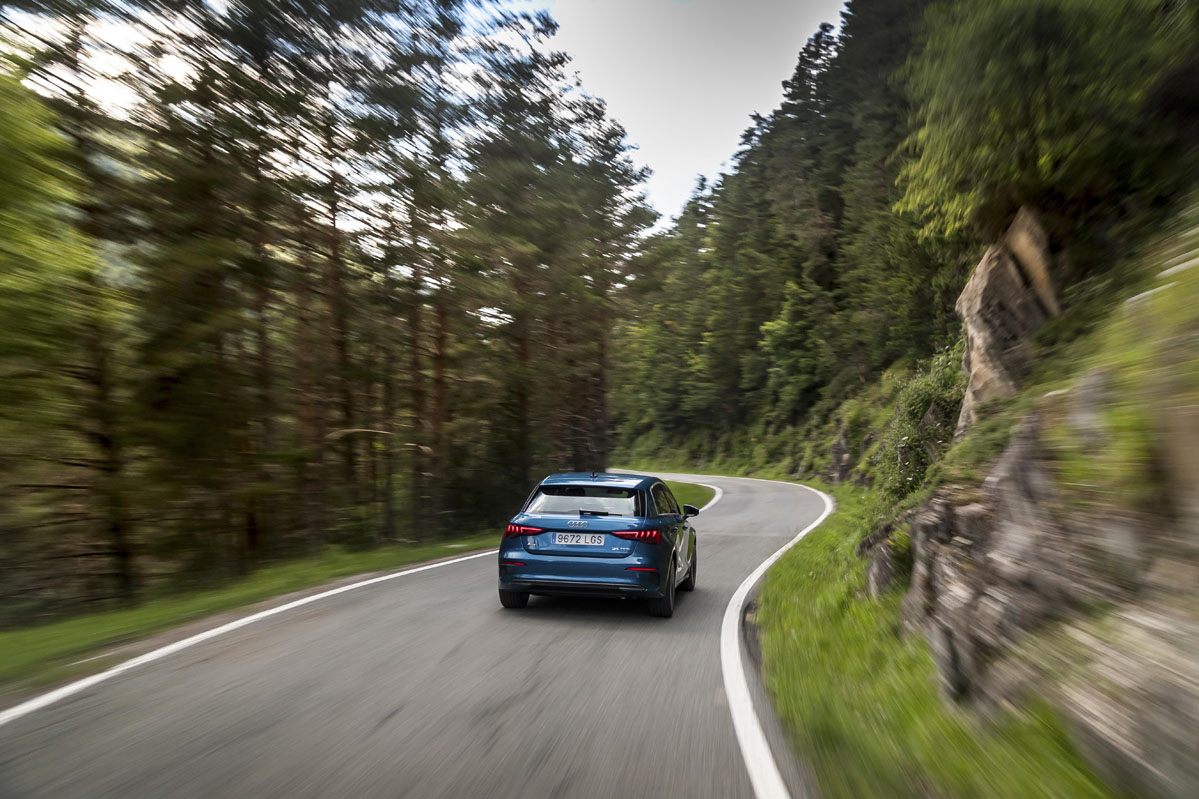 La nueva dirección es inapreciablemente más directa, y tras el ligero subviraje de todo tracción delantera, el A3 es totalmente neutro en pleno giro -su trasera jamás se descoloca- y logra un avance decidido sin pérdidas de tracción cuando aceleramos a fondo. Además, el sistema de control de estabilidad frena la rueda interior que corresponda si nota que hemos entrado con demasiado ímpetu en un giro, incluso antes de que patine, y sin que el conductor perciba esa frenada, lo que te hace creer mejor conductor de lo que eres. En carreteras de montaña, permite por agilidad y potencia disfrutar del pilotaje. Los A3 cuentan con botón Sport, pero su influencia en el comportamiento es pequeña.