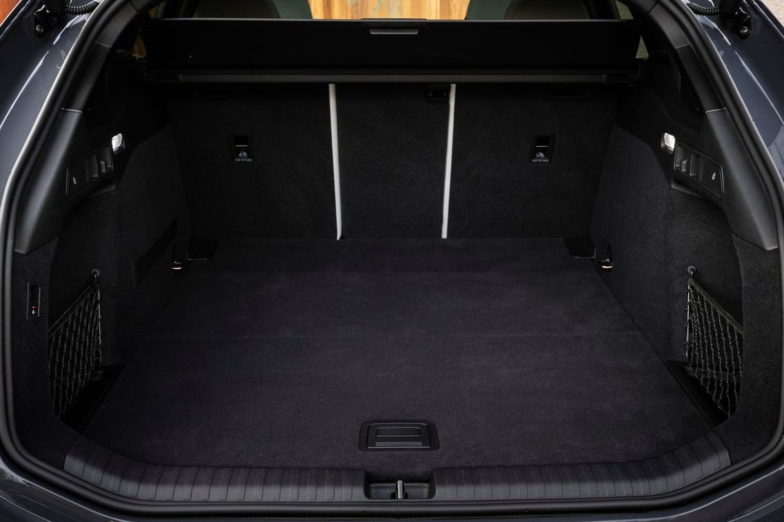 Si hablamos del maletero, cubica 502 litros, independientemente de si se trata de la versión Audi A6 e-tron Avant como la de esta prueba o de la Sportback, que ahora incorpora una apertura de portón como la del A7. Sí varía cuando se bajan los respaldos de los asientos de la segunda fila, que en el caso del familiar se puede hacer con una palanca que hay en el propio maletero, pasando a 1.422 y 1.330 litros, respectivamente. A esas cifras habría que sumarle los 27 litros del maletero delantero, el frunk, algo bastante práctico que no encontrarás en sus rivales alemanes.