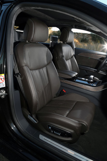 Después de embobarme con su diseño exterior, accedo al interior. Ninguna sorpresa en lo que a materiales se refiere; nobles, como si de una familia de alta alcurnia se tratase: madera, piel vuelta y cuero combinan con el aluminio y el negro brillante. Tampoco en ajustes, porque todo está perfectamente encajado. Como lo está el conductor, y no por falta de espacio, puesto que el habitáculo ha crecido 32 mm en longitud, sino por la forma envolvente del salpicadero y las puertas, sensación que se multiplica con la luz ambiente. Los asientos son comodísimos y tienen múltiples reglajes -banqueta, respaldo, apoyos laterales- que hacen que encontrar la posición de conducción correcta sea coser y cantar. Asimismo, ofrecen diferentes tipos de masaje -stretch, descanso, hombros, círculos y ola- y el confort que me brindan podía compararse con el del sofá de mi casa. ¡Si hasta el reposacabeza, con su logrado mullido, parece una almohada!