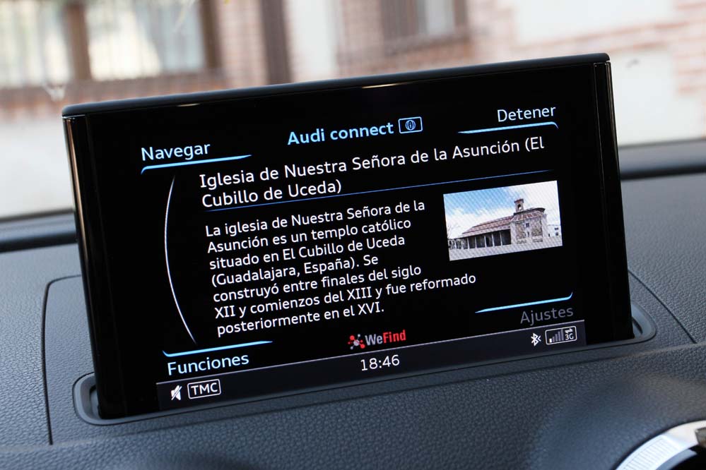 ¿Qué funcionalidades podemos encontrar dentro de esta app? Se pueden tomar imágenes geolocalizadas y enviarlas al coche, grabar la posición del vehículo en un parking para poder encontrarlo posteriormente, búsqueda de destinos on line que también se pueden enviar al coche, datos de tráfico y City Events. Una mención especial merece la función Music Stream (es lo mismo que la app Audi Music Stream). Desde ella se pueden elegir emisoras de todo el mundo para luego ser escuchadas en el sistema de infotainment del coche. La conexión entre esta funcionalidad y el vehículo se hace a través de WiFi. Lo que sorprende un poco es que esta sea la única app específica de música/audio que ofrezca Audi Connect.