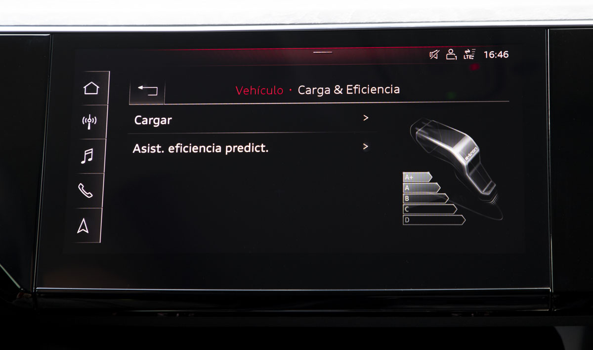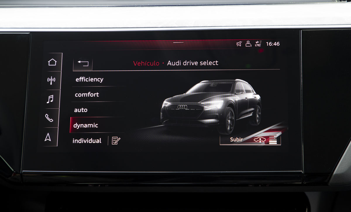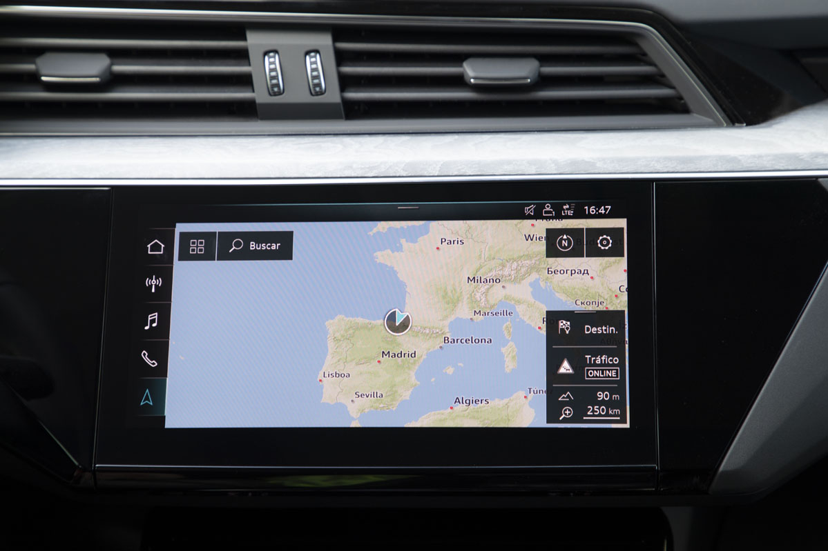 El caso es que desde el primer momento que conduces sientes que es un Audi, un auténtico Audi, y eso que su sistema de propulsión es totalmente diferente, porque de moverlo se encargan dos motores eléctricos. Éstos suman una potencia de 300 kW (408 CV) y son acompañados por un par de 664 Nm que surgen desde el primer momento en que pisas el acelerador. Benditos eléctricos. En el modo más deportivo, el Dynamic, puede acelerar de 0 a 100 km/h en solo 5,7 segundos y su velocidad máxima es de 200 km/h; aquí sí que existe una notable diferencia, que debido al limite de velocidad en España, pasa desapercibida. Toda la potencia está disponible durante 8 segundos con el modo Boost y la equivalente a 360 CV durante un minuto. El caso es que circules como circules, independientemente del modo, es escaso el poco ruido que se filtra porque la firma alemana ha conseguido una muy buena insonorización del habitáculo.