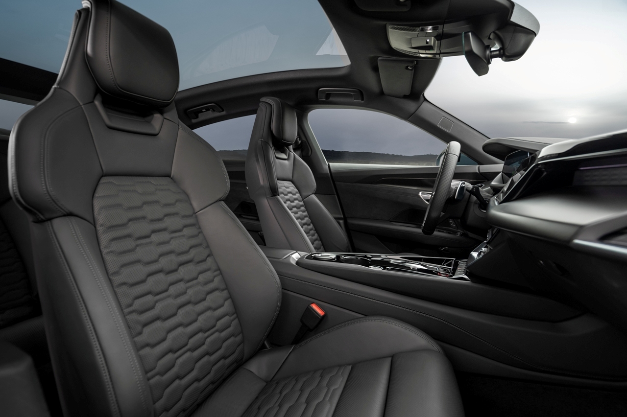 En concreto, la máquina eléctrica delantera en el e-tron GT 60 quattro rinde 175 kW (238 CV), y la trasera genera 320 kW (435 CV). Según Audi, ambas mantienen una reserva de potencia disponible para situaciones de conducción extrema, por lo que la suma de sus potencias individuales supera la potencia total del sistema, que alcanza los 350 kW (476 CV). Eso sí, a través del sistema de optimización de la aceleración, el sistema “Launch Control” (de serie tanto en este como en la versión RS), la potencia total alcanza los 390 kW (530 CV), disponibles durante exclusivamente 2,5 segundos en modo “boost”; mientras que el par total máximo es de 630 Nm (640 Nm en modo boost), nada menos que 90 Nm más del proporcionado por el R8 V10 FSI de potencia equivalente.