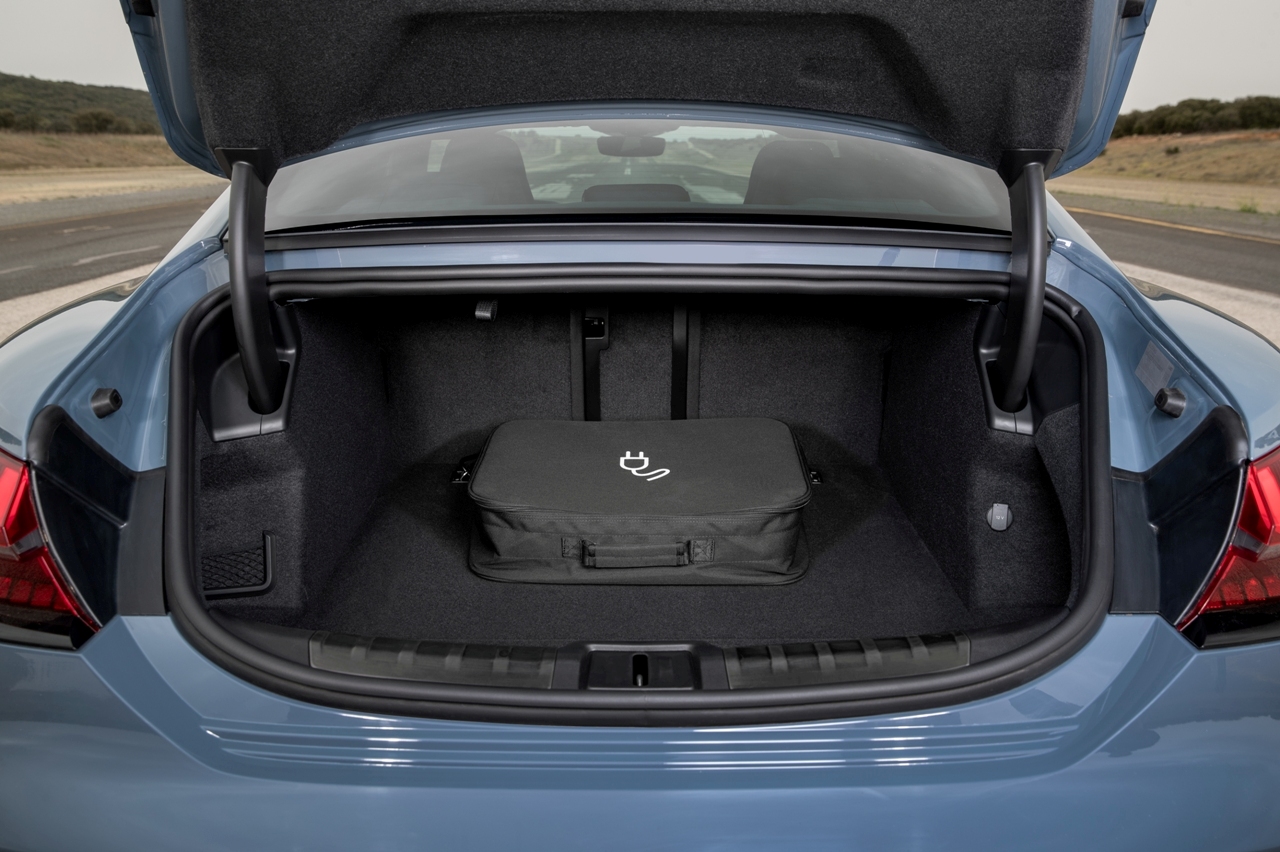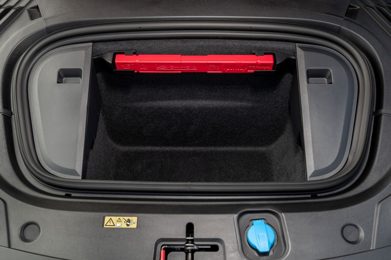 Bajo el capó delantero, además de otro pequeño hueco de 80 litros que ocupa casi en su totalidad el maletín de cables de carga, encontramos el depósito del líquido de frenos, el depósito de lavacristales, y la batería de 12 voltios, todo ello cubierto con tapas de protección. La suma de los dos no supone un gran espacio de carga, pero tampoco estamos ante un vehículo que vaya a basar su vida en el transporte de maletas si no todo lo contrario.