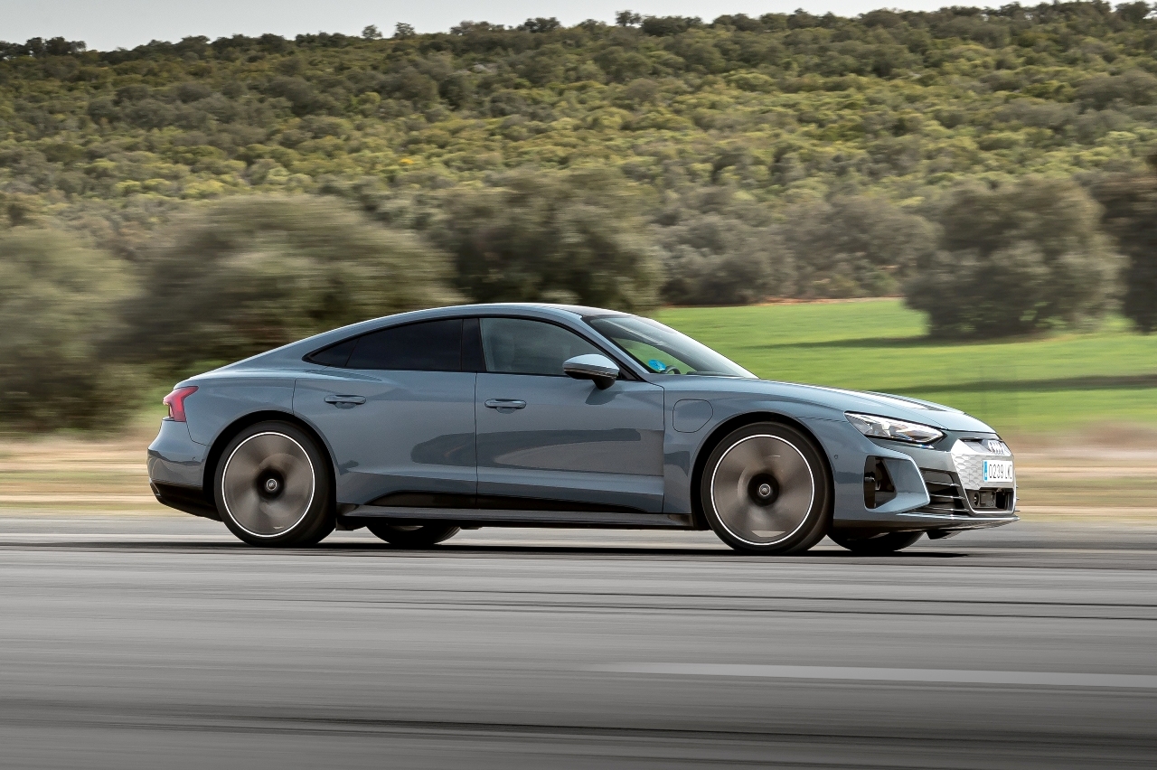 Nuestro protagonista no es de los Audi más rápidos a la venta, ni mucho menos. Por un lado, está este mismo modelo en versión RS con 646 CV y una aceleración de 3,3 segundos en el 0 a 100 km/h, una auténtica barbaridad. Y por otro, muchos modelos deportivos de gasolina que con un peso mucho menor le ganan la partida al e-tron GT. Por ejemplo, un Audi R8 de 570 CV acelera de 0 a 100 km/h en 3,7 frente a los 4,1 del e-tron GT de 530 CV. Pero el R8 pesa 686 kg menos, es decir que es como si el Gran Turismo eléctrico fuera cargado con un sobrepeso de 10 ocupantes de 70 kilogramos.