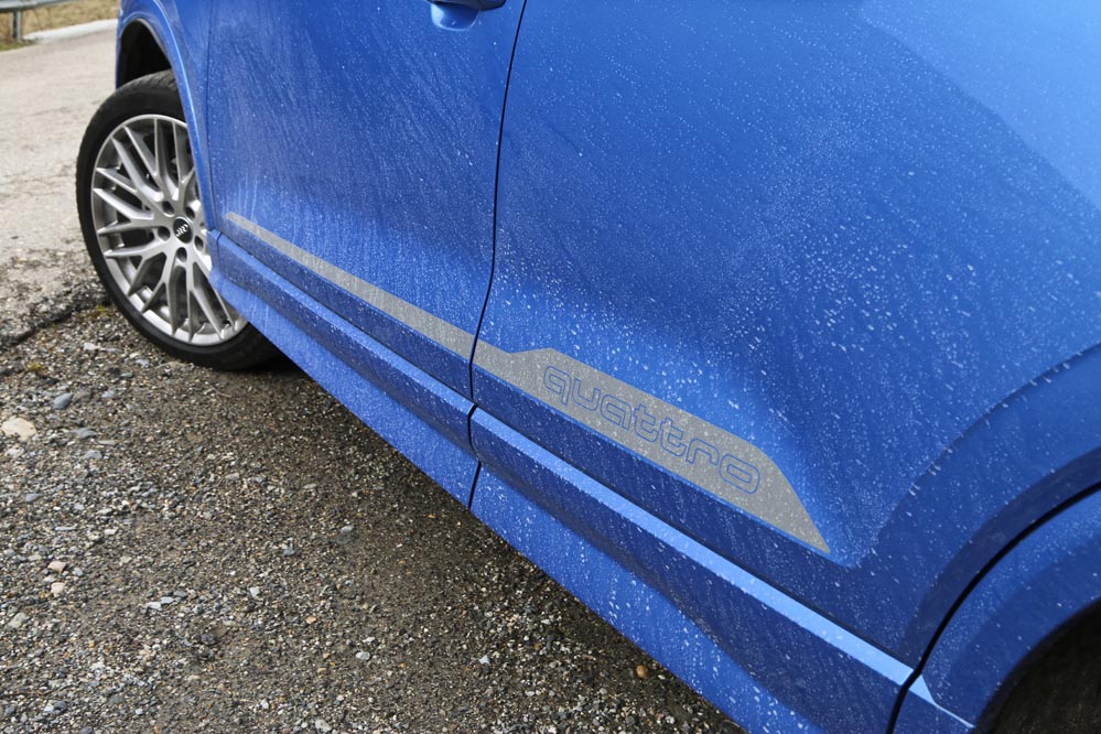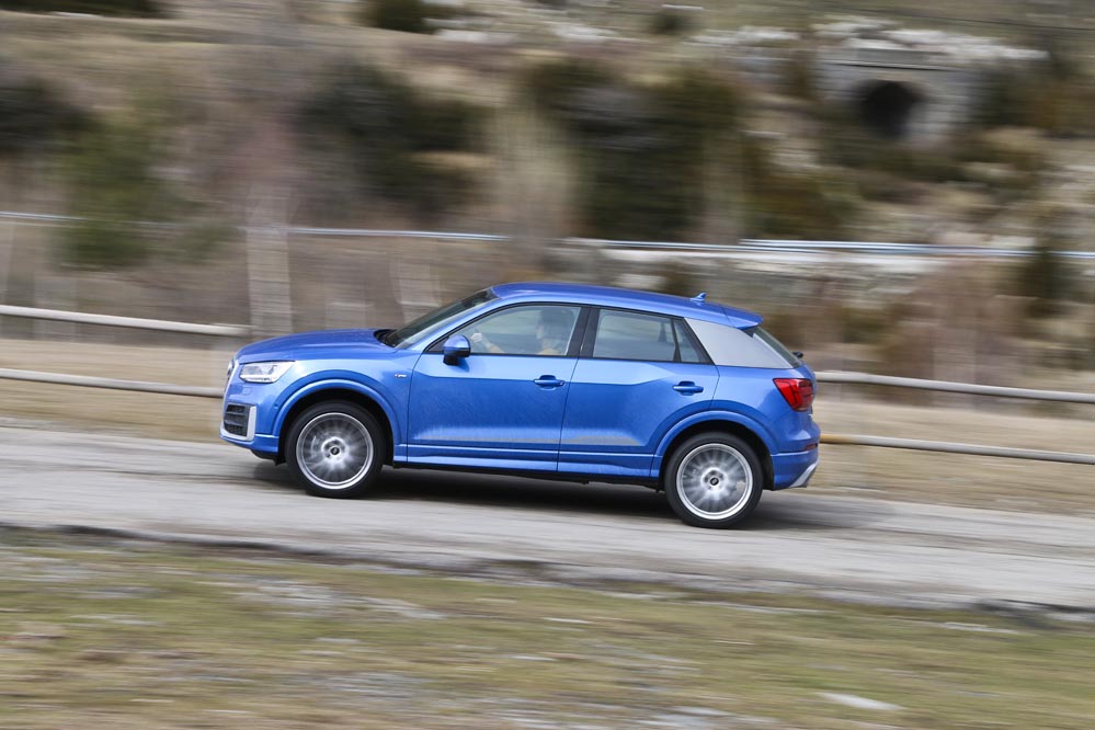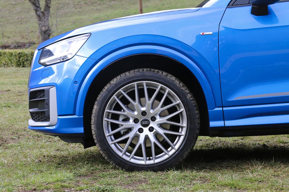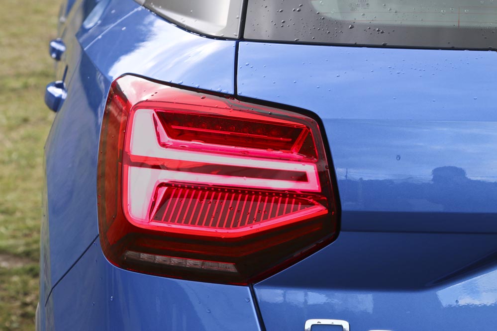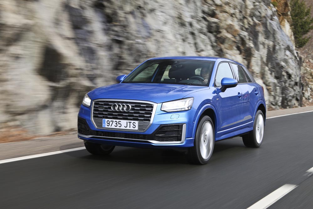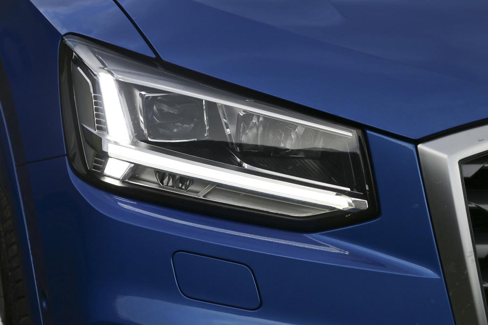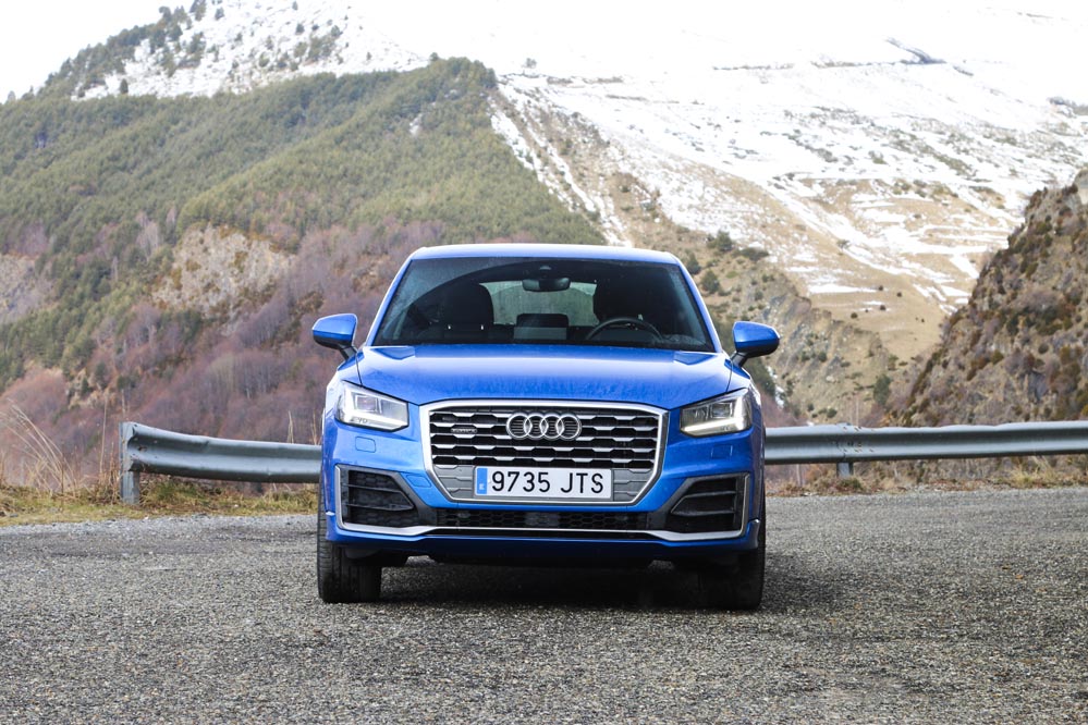 ‘Mi’ Audi Q2 de pruebas es un buen ejemplo. El color Azul Ara me parece una magnífica opción para un coche así: es elegante y sofisticado, pero tiene un punto desenfadado muy interesante. Las enormes llantas de aleación multirradio de 19 pulgadas y el paquete estético S-Line ponen la guinda al conjunto. Me doy cuenta de que la gente lo mira. ¡Qué Audi tan chulo! Por delante me parece mucho más emocionante que el Audi Q3: la nueva parrilla, que será copiada por otros modelos más adelante, es un acierto.