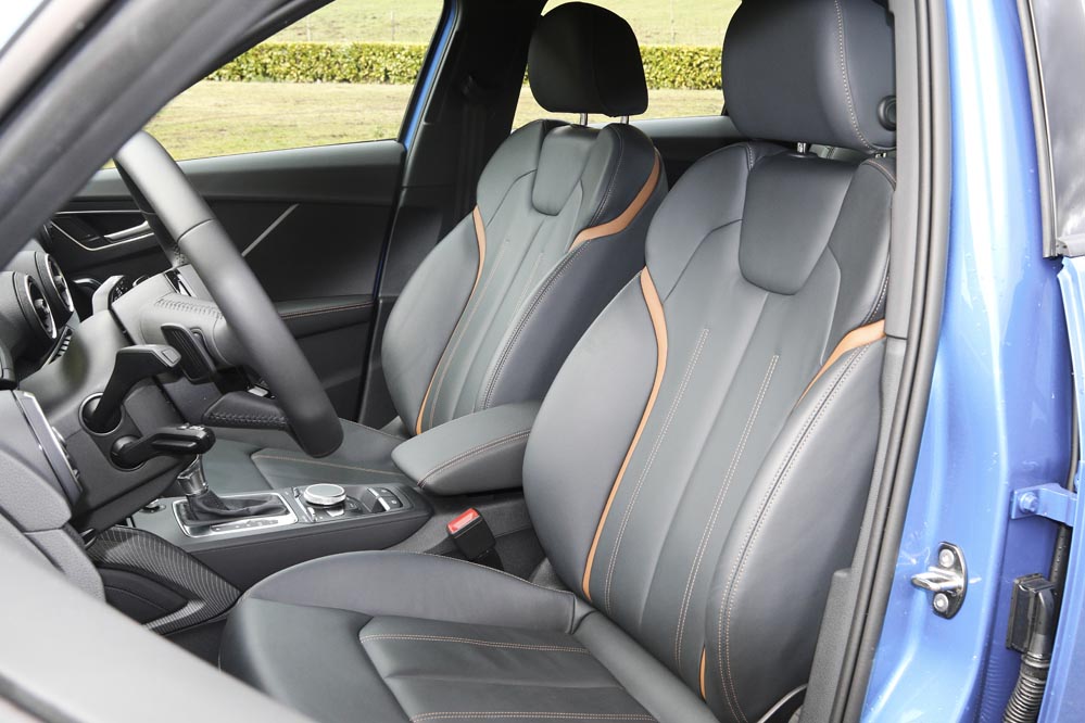 El interior es prácticamente idéntico al del Audi A3, y eso no es malo: sencillo, simple, minimalista, pero con un nivel de acabados y de calidad general muy bueno. Si encima, como es mi caso, te pones tonto con la lista de opciones, lo puedes llegar a dejar muy bien terminado, aunque el susto al pasar por caja puede ser interesante: más tarde hablaremos sobre esto.