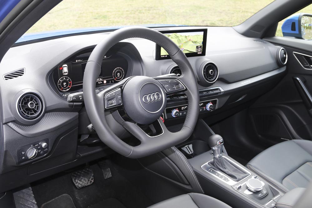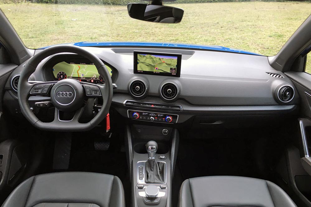 Y es que en el interior, milagros los justos. Mide lo que mide, por lo que el espacio interior es el que se espera: detrás, dos adultos pueden viajar cómodamente, salvo que midan más de 1,90. Sin excesos, sin demasiada holgura, pero sin problemas; delante, mejor: resulta un coche con una postura al volante fácil de encontrar. El Q2 de pruebas incorpora el Audi Virtual Cockpit, el cuadro de mandos digital, y la verdad es que en ciudad es un sistema que resulta muy útil, especialmente si abusas del navegador.