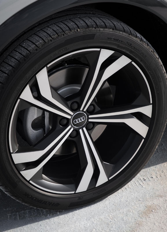 Es avanzar un metro y comprobar las autenticas diferencias del primer crossover compacto de Audi. El parabrisas está un poco más inclinado. Asimismo, la línea del techo cae de forma más pronunciada hasta fundirse con unos pilares C, también más inclinados. Fácilmente se aprecia que es 29 mm más bajo... No así que es 16 mm más largo o que es 6 cm más estrecho; sí, aunque parece más ancho debido a sus marcados hombros. Enfatizan su fuerte presencia unas llantas de aleación que pueden llegar a ser de hasta 20 pulgadas.