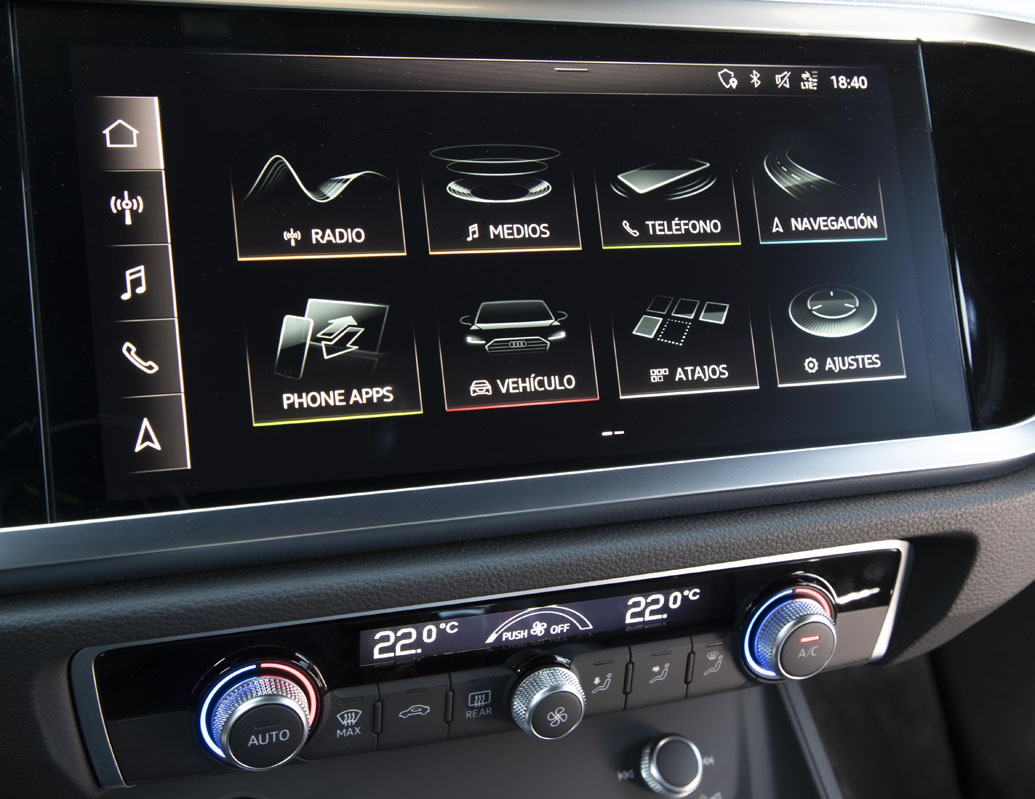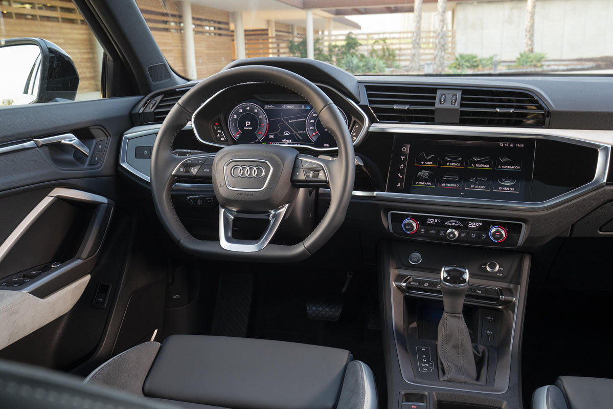 Una vez analizado el exterior, continúo la prueba del Audi Q3 Sportback prestando especial atención el interior. Es un calco del del Q3, por lo que prima el diseño y la tecnología. La calidad percibida es muy buena y al tacto, también. Desde el acabado de acceso, el cuadro de instrumentos es digital -10,25 pulgadas, aunque en opción está disponible el Audi virtual cockpit plus con pantalla de 12,3- y el salpicadero presume de una pantalla 10,1 pulgadas, encastrada en una gran moldura en negro brillante denominada por la marca 'Black Panel'. Con lo que sigo sin comulgar es con la ausencia de botones, aunque la compañía alemana ha dejado los más importantes. Además, se pueden añadir elementos distintivos como Alcantara en diferentes colores en parte del salpicadero o la placa 'quattro' iluminada.