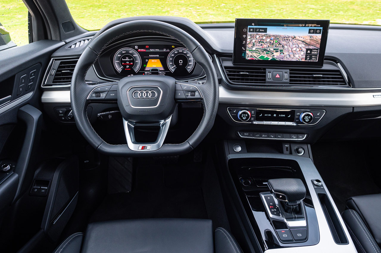 El Audi Q5 Sportback 55 TFSIe de la prueba es un SUV con imagen deportiva y elevadas prestaciones que además presume de lucir la etiqueta medioambiental 0 emisiones de la DGT sobre su parabrisas. Un vehículo que además de todo lo anterior tiene un interior bien rematado y ofrece un refinado confort de marcha.