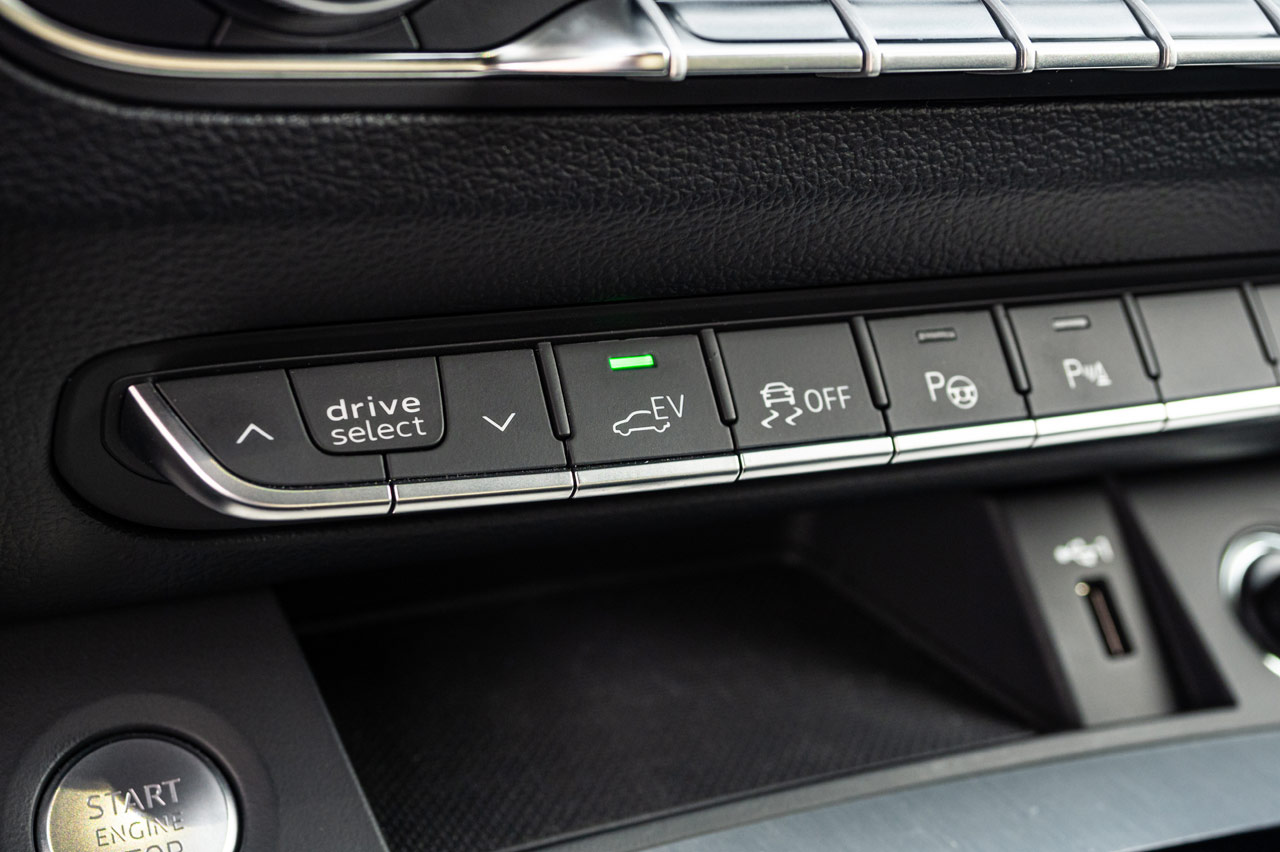 En cuanto al sistema de propulsión, está formado por un motor 2.0 TFSI de gasolina y cuatro cilindros en línea que desarrolla 265 CV de potencia y 360 Nm de par. Este bloque se une a una transmisión automática de doble embrague y siete velocidades y a un sistema de tracción quattro; y a un motor eléctrico que proporciona por sí solo 143 CV y 350 Nm.