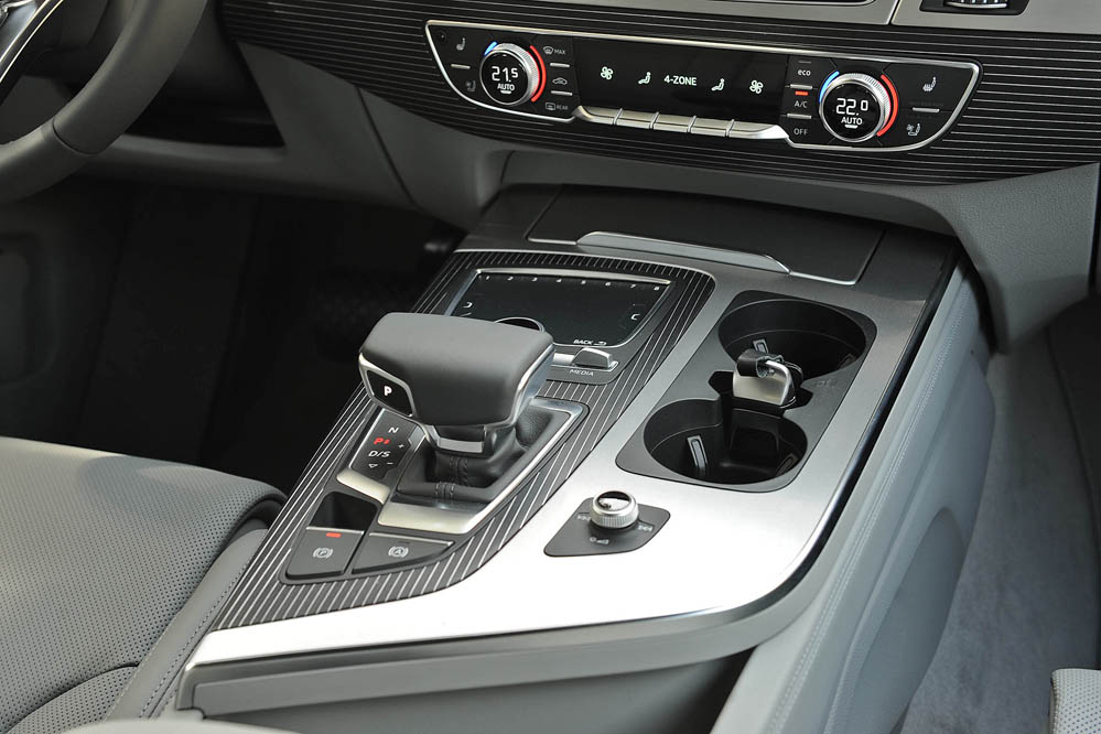 En la consola del túnel central del Audi Q7 2015 de esta prueba incorpora un MMI touch de nuevo cuño. Tanto el conductor como su acompañante pueden escribir, hacer zoom y scroll sobre la amplia superficie de cristal. En cada acción, los dedos reciben un estímulo táctil. El manejo es muy intuitivo, e incluso lleva texto predictivo; también órdenes vocales: basta decirle: “¿Dónde puedo repostar?”, para que busque las gasolineras más cercanas.