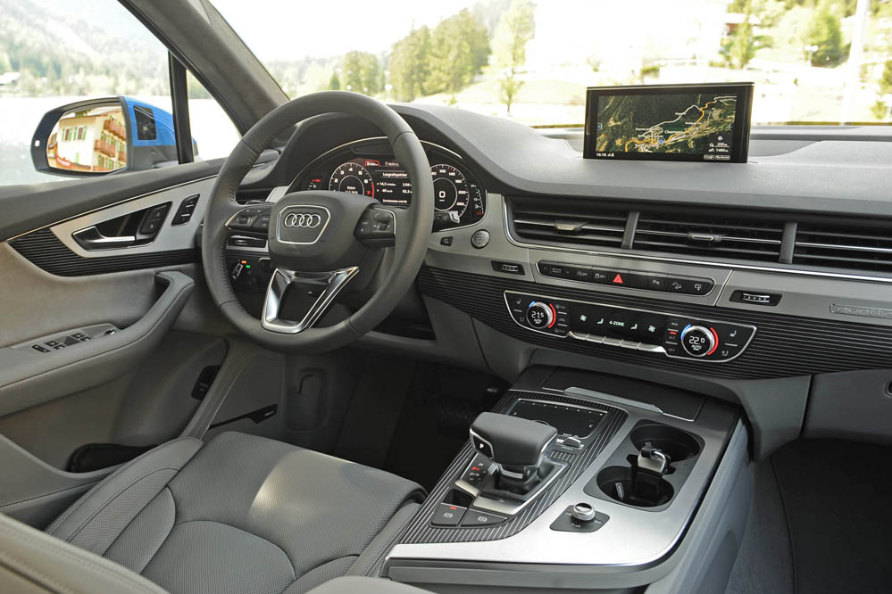 “El Audi Q7 2015 está, más que nunca, ‘a la vanguardia de la técnica’. Con un consumo hasta un 28% inferior respecto al modelo anterior, el reto de la eficiencia es uno de sus grandes logros. También su peso, uno de los más bajos de su segmento. Y a eso añade las innovadoras soluciones tecnológicas en cuanto a mecánica, chasis, ‘infotainment’, conectividad y asistentes electrónicos, con los que marca una nueva pauta en su clase”, asegura Ulrich Hackenberg, responsable de desarrollo técnico de Audi, durante la presentación del Q7 en Suiza.