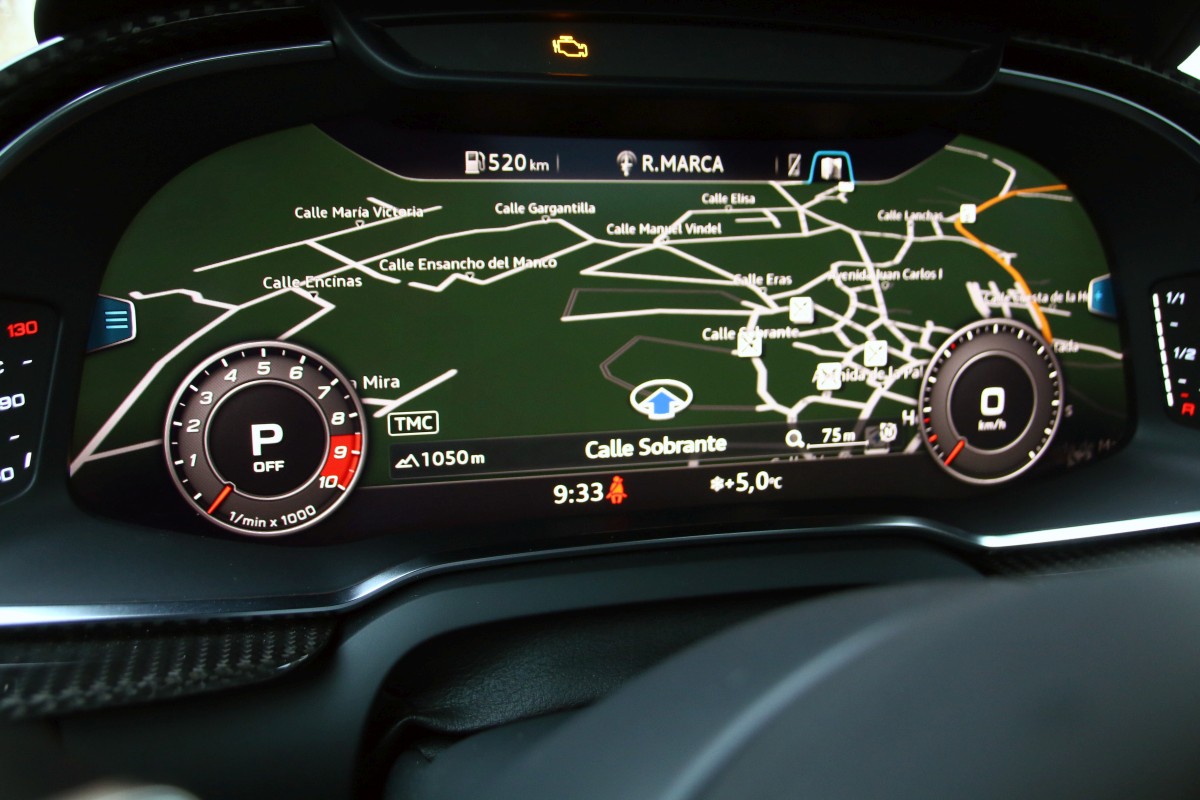 En el interior, más de lo mismo: diseño de matrícula de honor, encima macerado con excelentes materiales y ajustes. Equipa un cuadro de instrumentos digital Audi Virtual Cockpit de 12,3" con diferentes visualizaciones y toda la información necesaria para poder prescindir de la pantalla del sistema de infoentretenimiento. De hecho, todo está dirigido al conductor, como debe ser.
