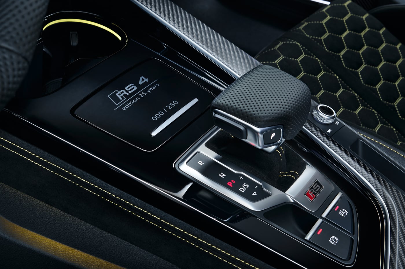 Además, la consola cuenta con el número de la unidad limitada. El de nuestra unidad de pruebas del Audi RS 4 Avant edition 25 years es la #42 de 250 -a la venta en España solo encontrarás del 40 al 45, puesto que solo se han destinado seis unidades de las 250 creadas-. Asimismo, el Virtual Cockpit puede tener una visualización que también rinde homenaje a su antepasado al mostrar las esferas en blanco.